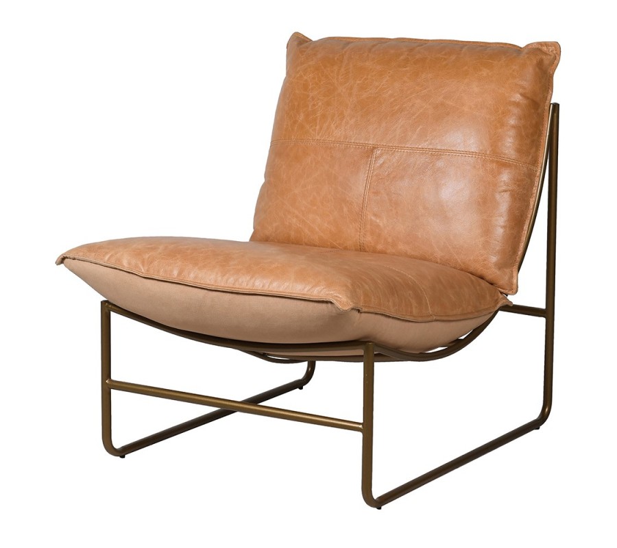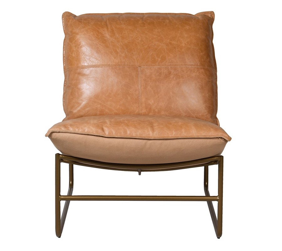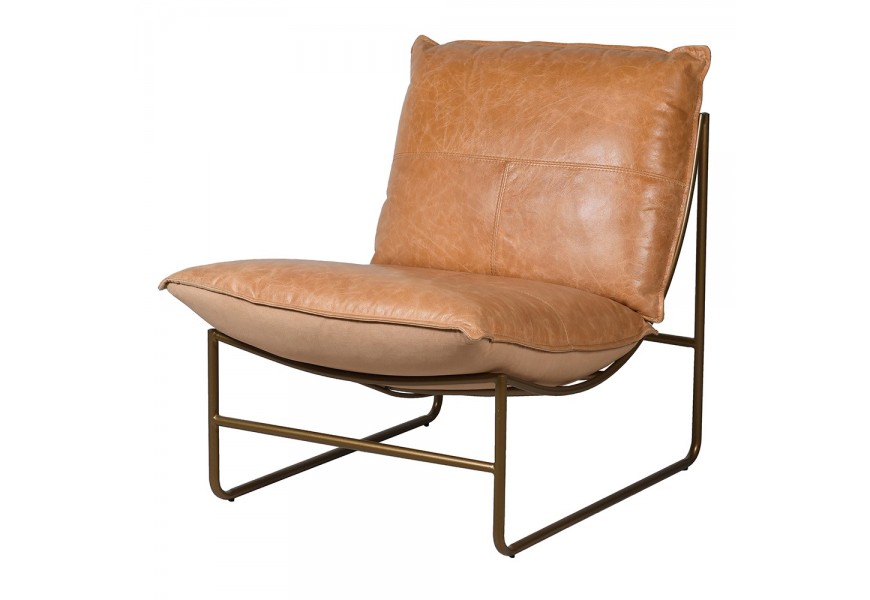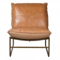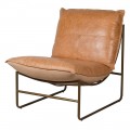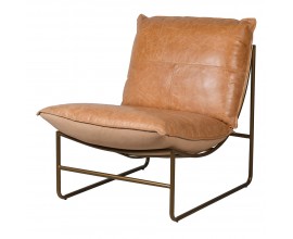 Luxusné moderné kožené kreslo Mauritius s kovovou konštrukciou a hnedým poťahom z pravej kože 74 cm