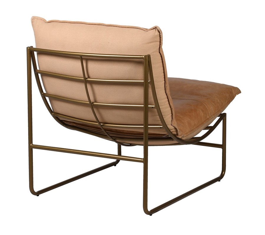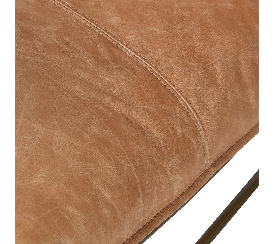 Sedaciu časť a chrbtovú opierku tvoria dva veľké štvorcové vankúše s penovou výplňou. Ich vrchná časť je potiahnutá pravou kožou v príjemnej svetlej hnedej farbe a spodná časť pevnou textíliou v neutrálnom béžovom odtieni.