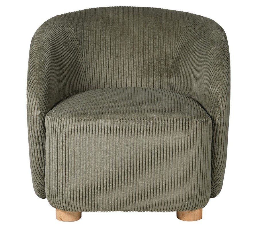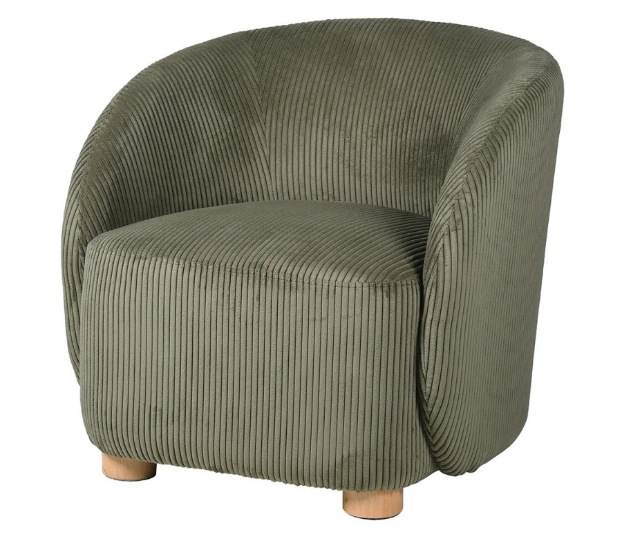 Moderné dizajnové klubové kreslo Sabia s kordovým poťahom v šalviovej zelenej farbe 76 cm