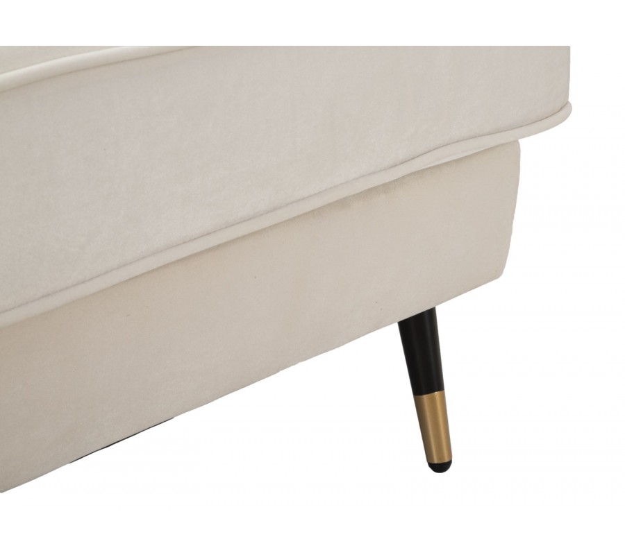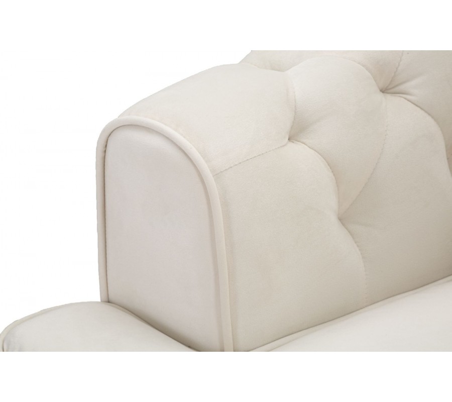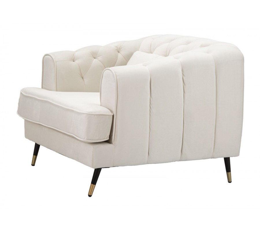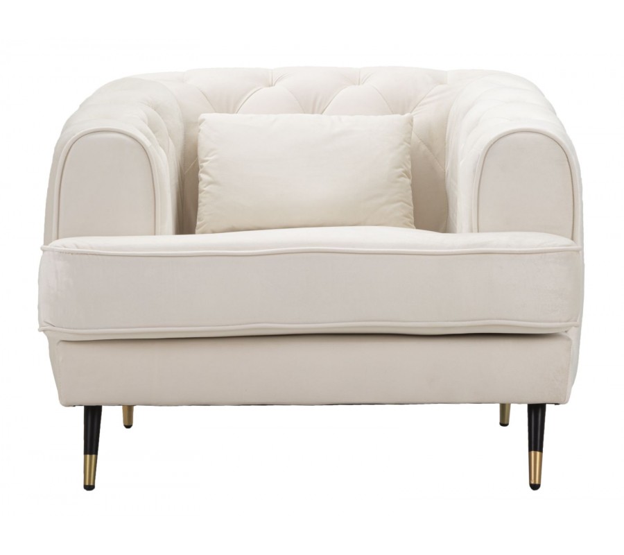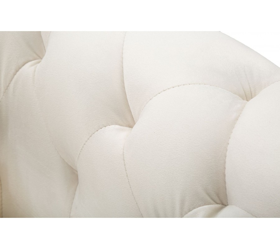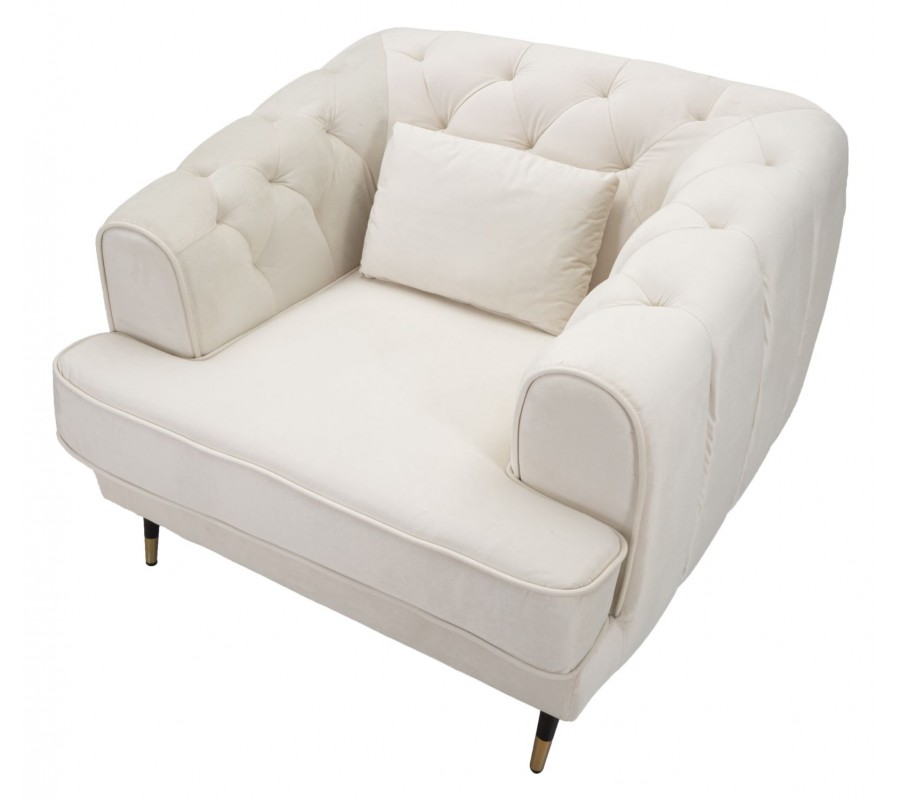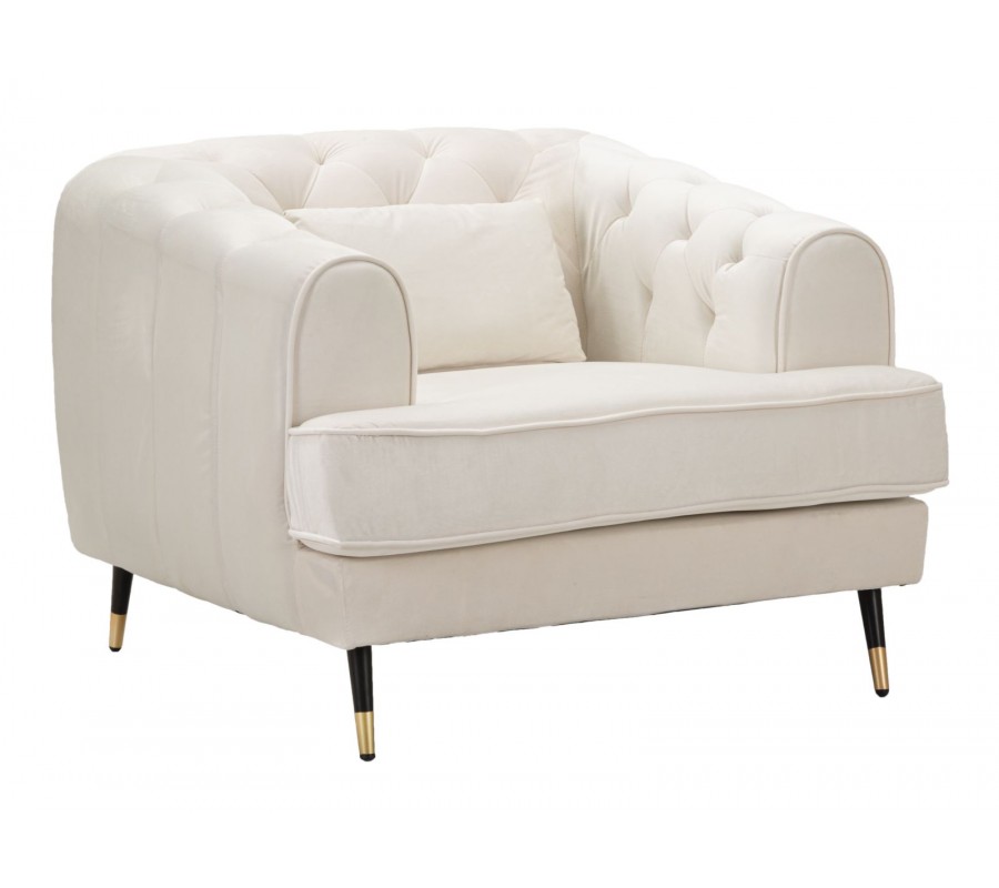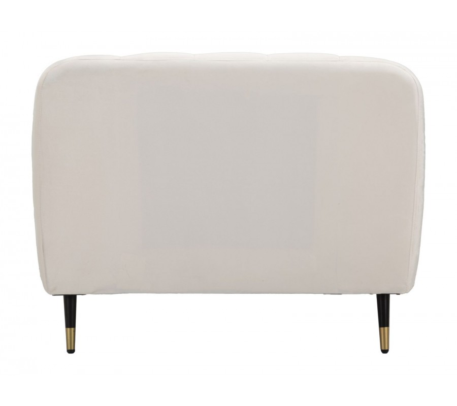 Art deco štvorcové zamatové čalúnené prešívané krémové kreslo Lana s čiernymi nožičkami so zlatými detailmi 93 cm