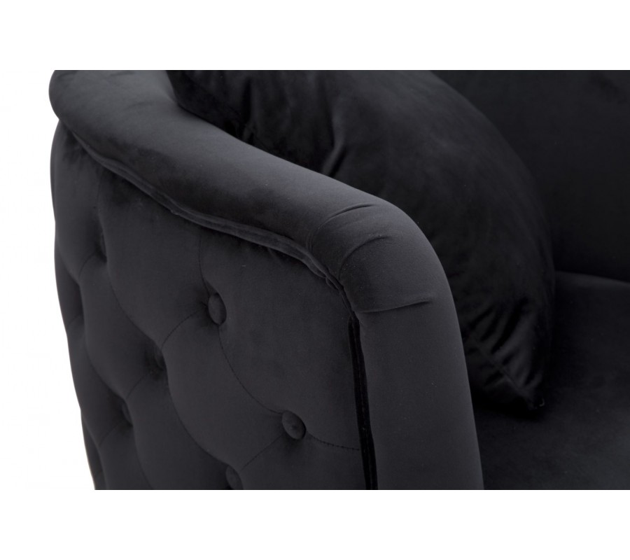 Art deco zaoblené prešívané čalúnené kreslo Zeran so zamatovým poťahom v čiernej farbe so zlatými kovovými nožičkami 76 cm