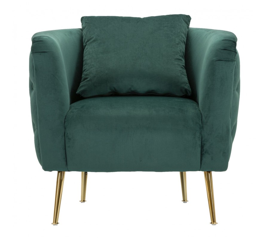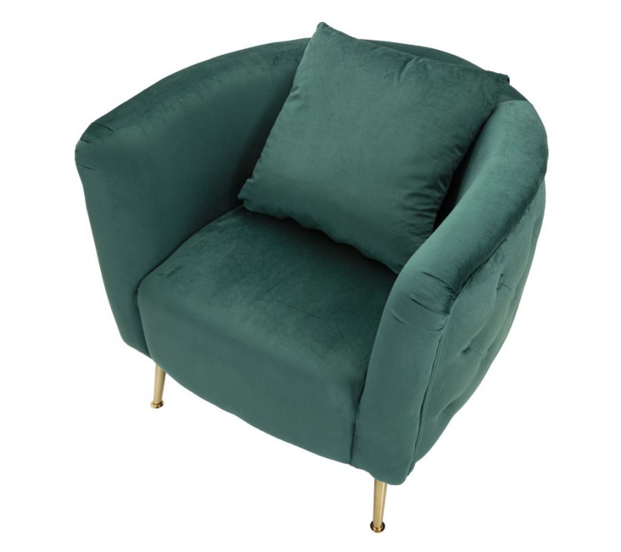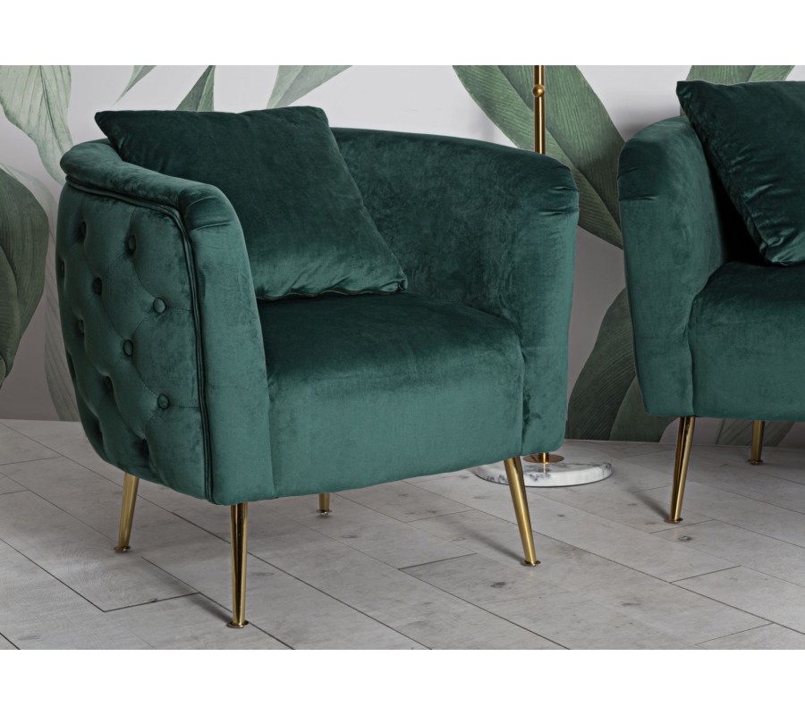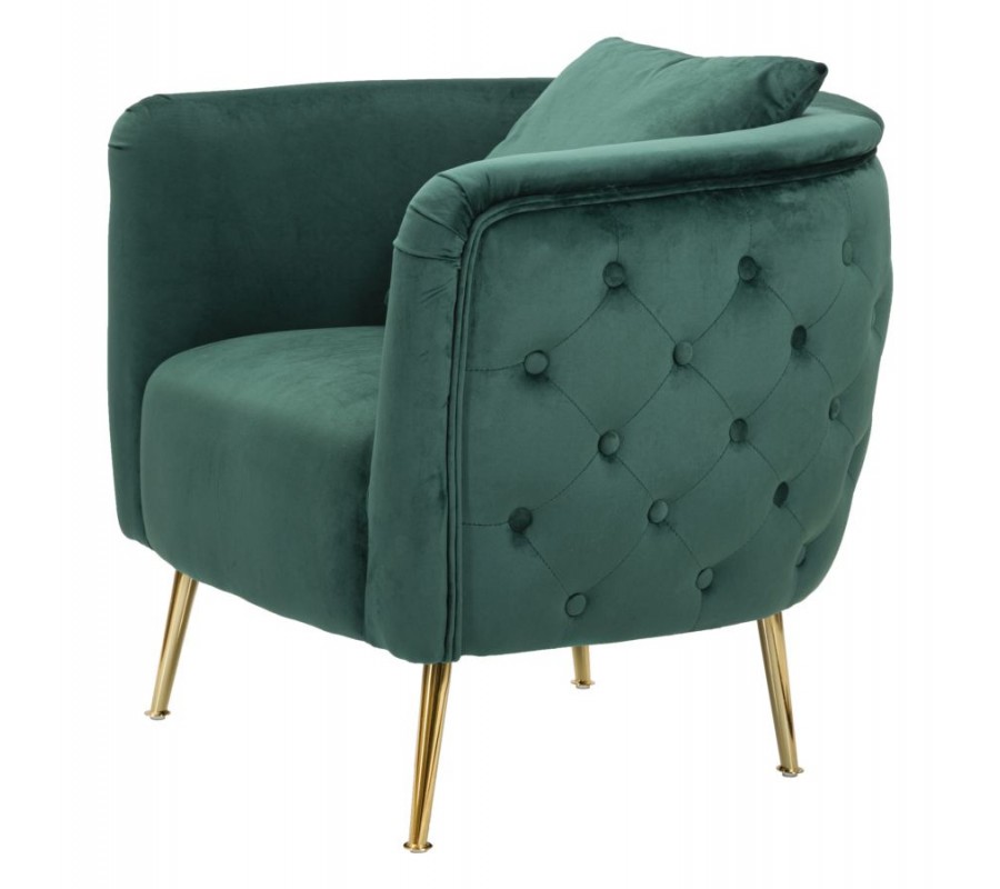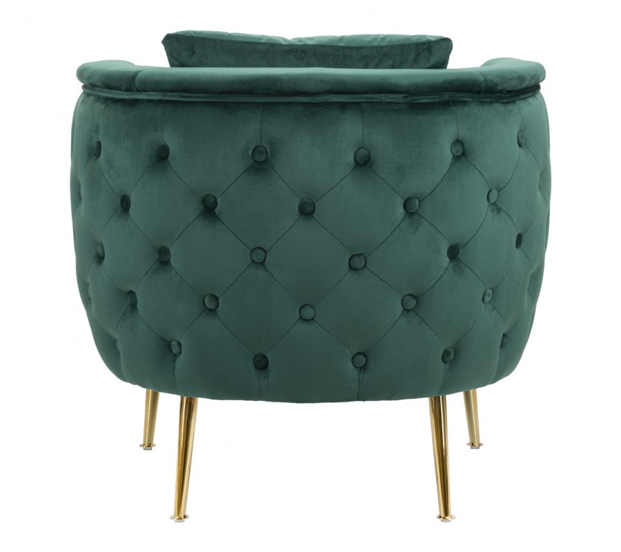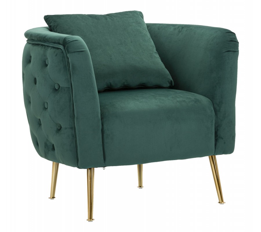 Art deco štvorcové oblé čalúnené smaragdové kreslo Zeran s prešívaným chrbtom so zlatými kovovými nožičkami 76 cm