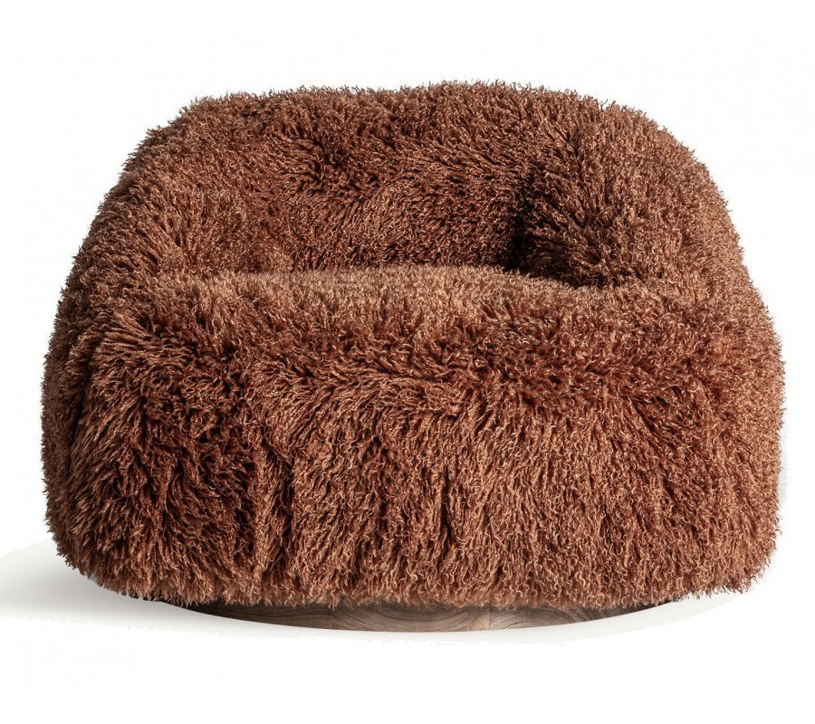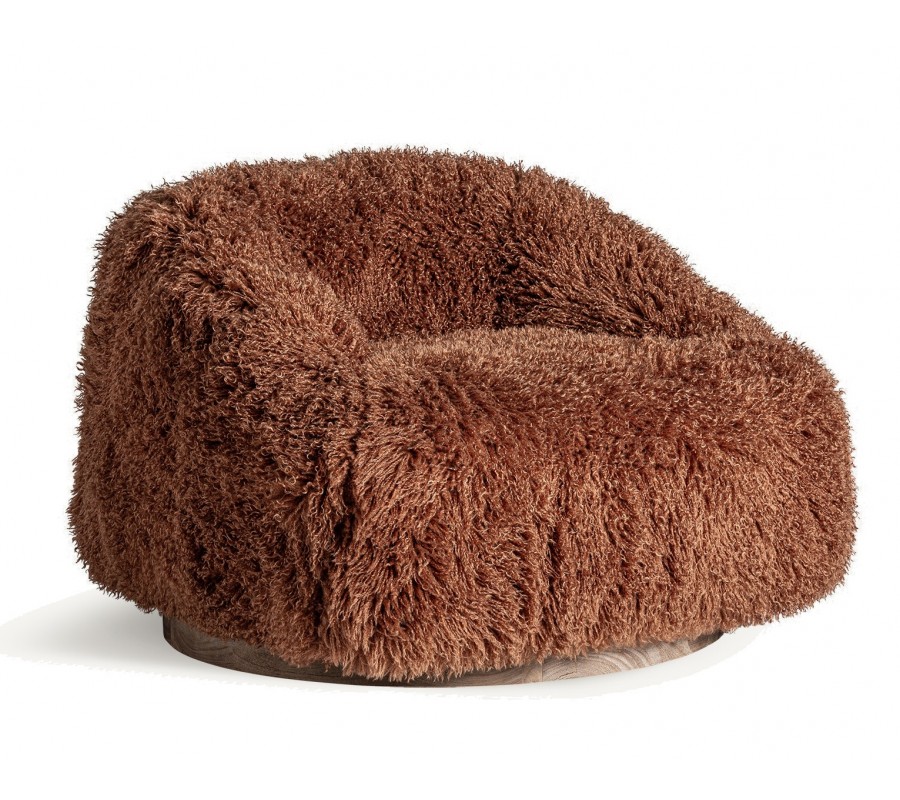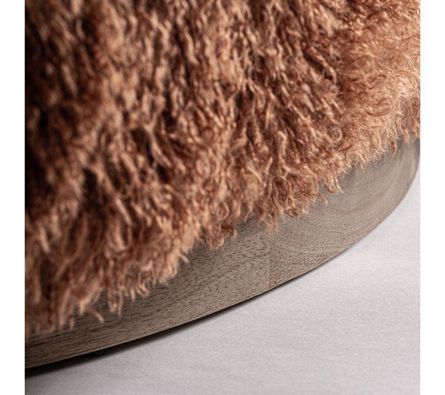 Kreslo Lavonne je exkluzívny dizajnový kúsok, ktorý okamžite pritiahne pozornosť svojím mohutným a objemným tvarom. Celoplošný poťah z umelej kožušiny s dlhým vlasom v hnedej farbe vytvára neodolateľne mäkký a luxusný vzhľad, ktorý umocňuje glamour štýl interiéru. Vďaka svojmu zaoblenému operadlu a širokej sedacej ploche poskytuje kreslo maximálny komfort a pocit útulnosti.