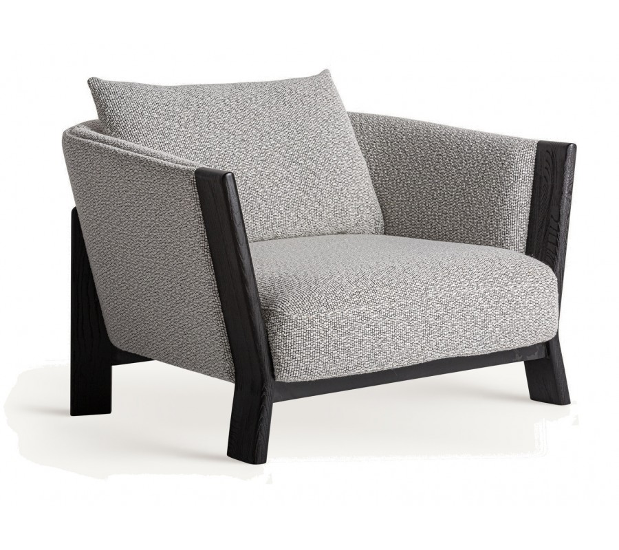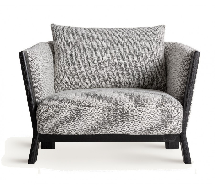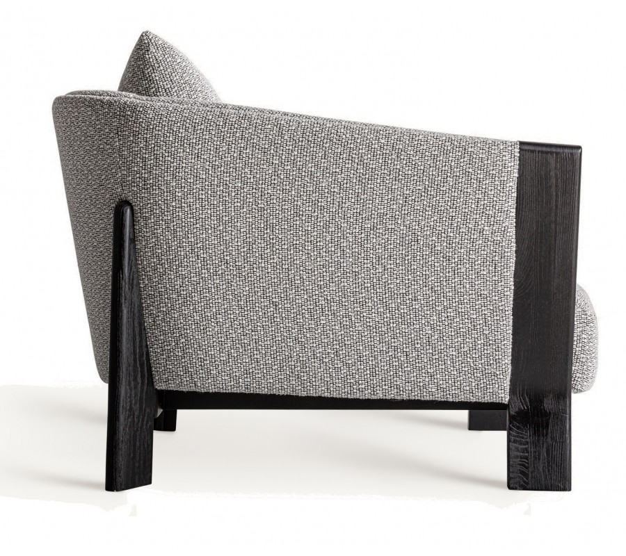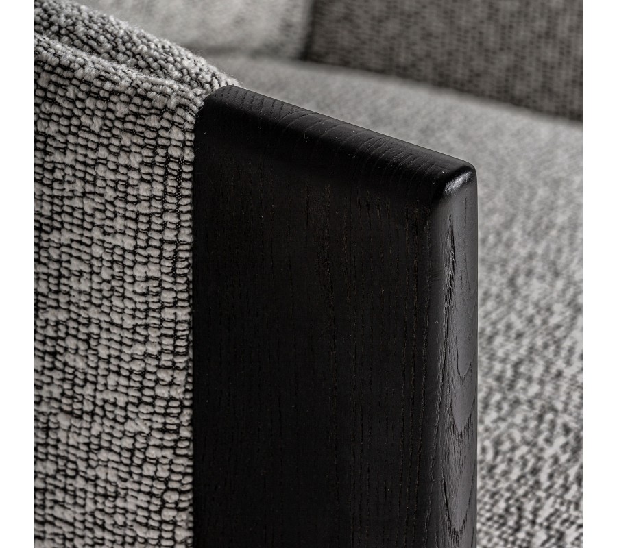 Stabilnú luxusnú konštrukciu tvorí masívne dubové drevo s čiernou povrchovou úpravou, ktorá zvýrazňuje prirodzenú kresbu dreva. Disponuje štyrmi nožičkami s obdĺžnikovým pôdorysom, predný pár je jemne zošikmený a plynulo prechádza do opierok, čím vytvára dynamickú siluetu a dodáva kreslu vizuálnu nápaditosť.
