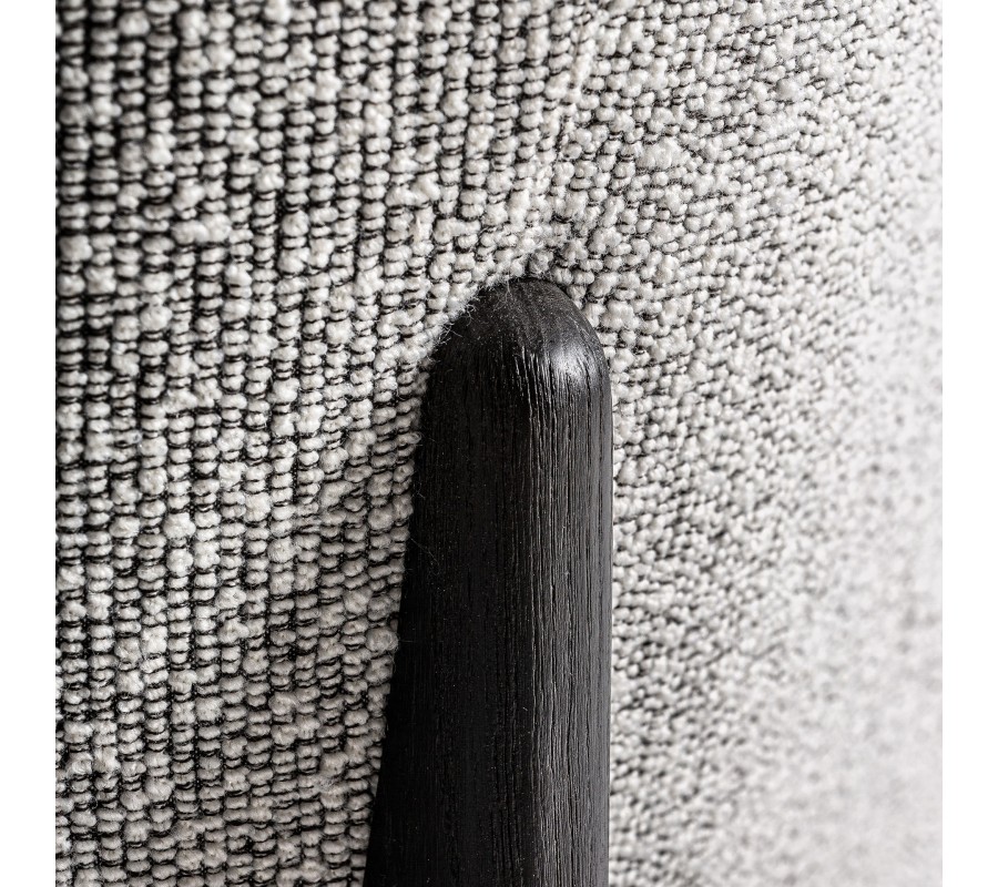 Luxusné škandinávske sivé kreslo Naria zaobleného tvaru z dubového dreva v čiernej farbe s obdĺžnikovým vankúšom 77 cm