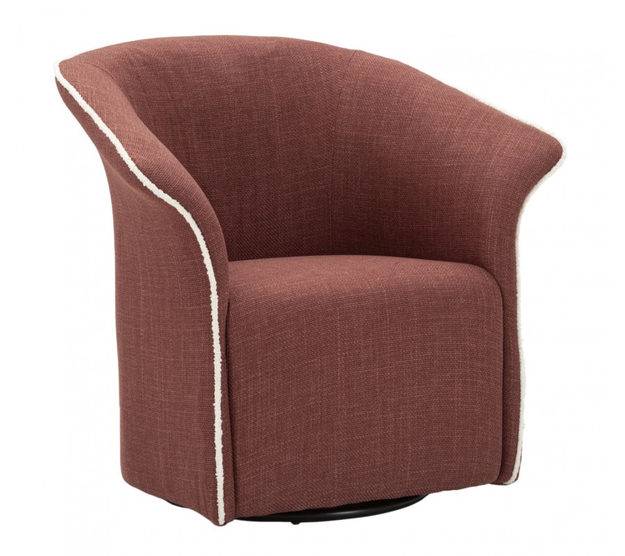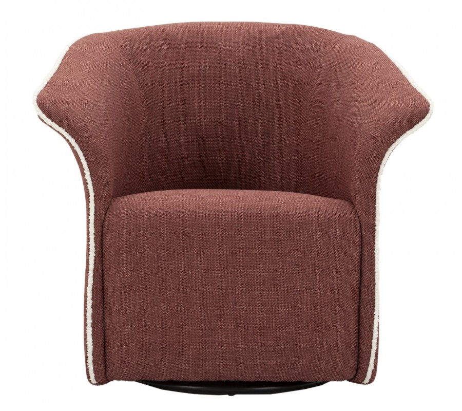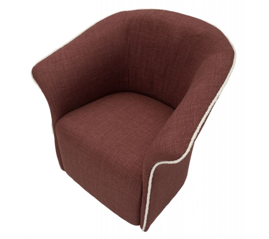 Moderné otočné klubové textilné kreslo Merlon v terakotovej hnedej farbe s bielym prešívaným lemom 83 cm