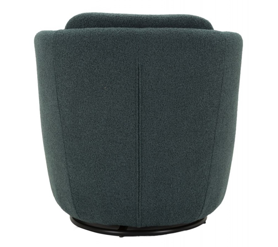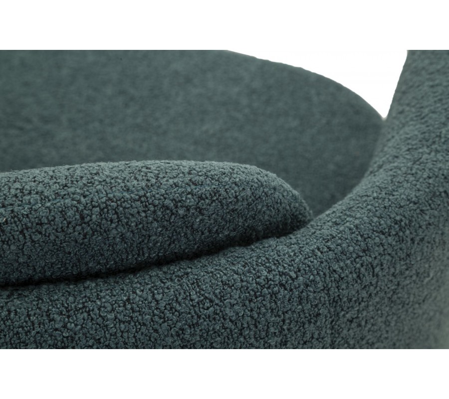 Moderné klubové čalúnené otočné kreslo Meron v petrolejovej modrej farbe s bouclé poťahom s čiernou podstavou 75 cm