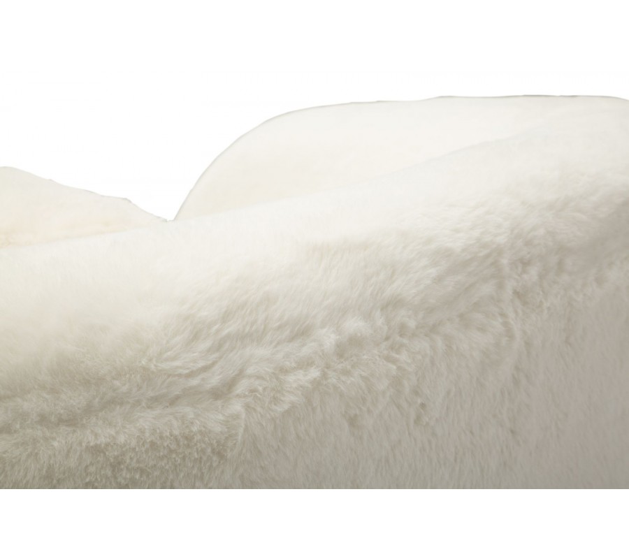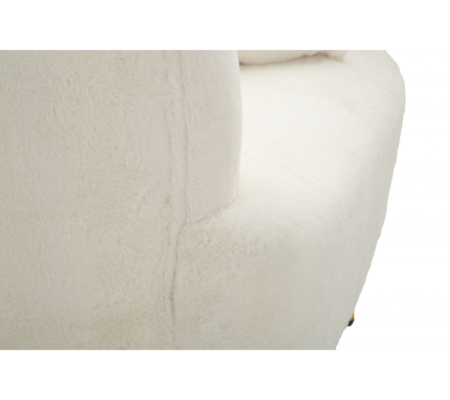 Penové čalúnenie v kombinácii s poťahom z umelej kožušiny s nízkym vlasom vás očarí neodolateľnou mäkkosťou. Biela farba priestor presvetlí a spolu s lesklým zlatým prevedením nožičiek zdôrazňuje prvky art deco estetiky v tomto dizajne.