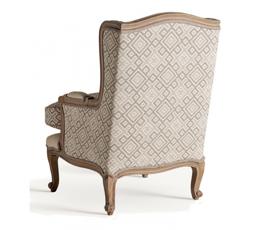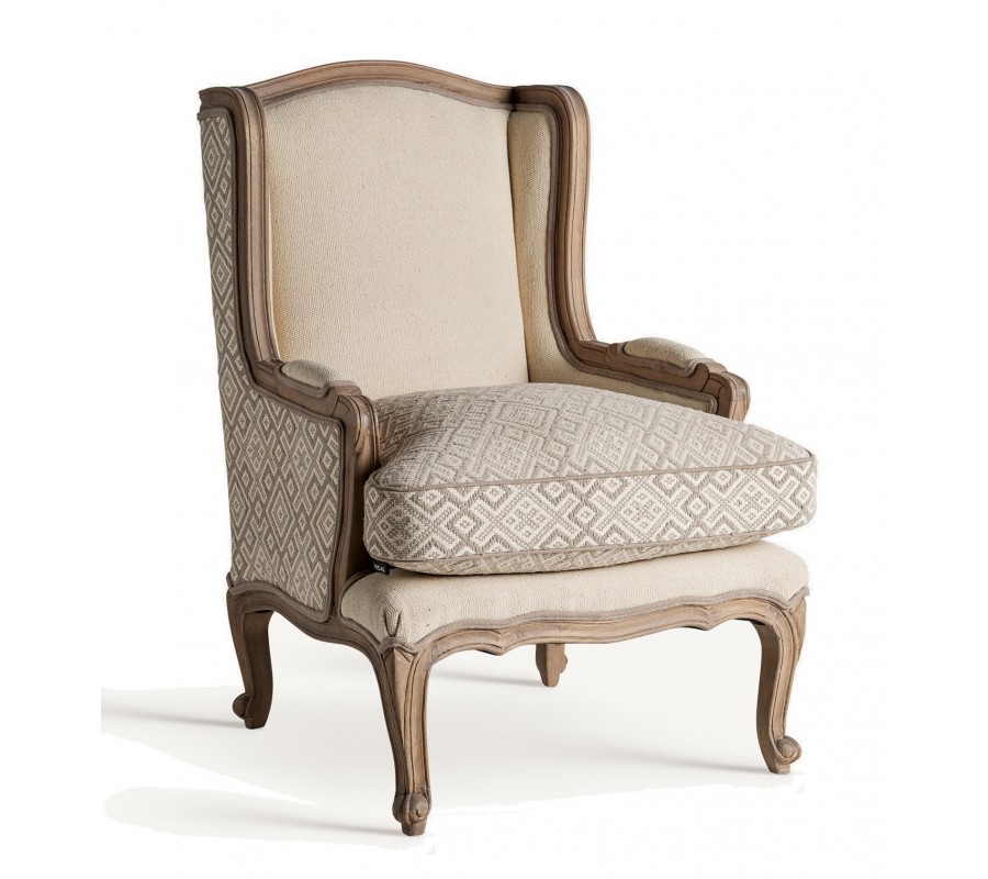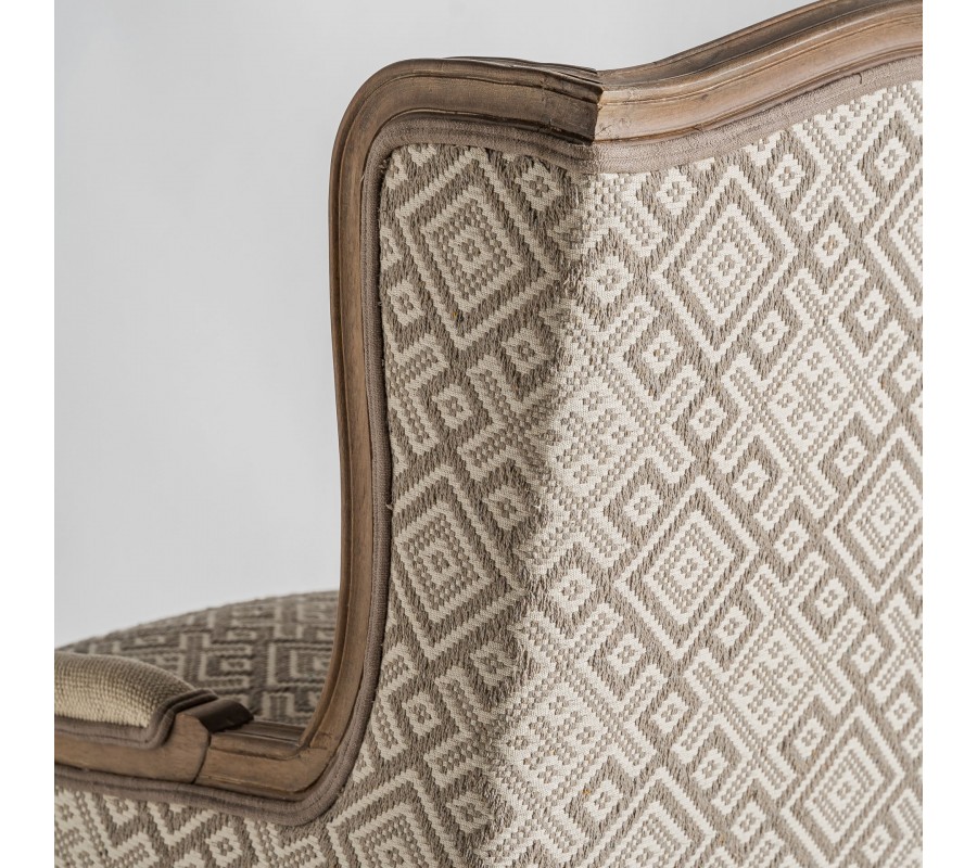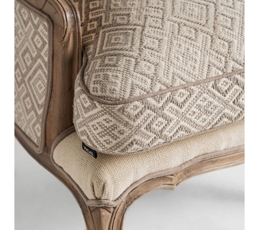 Luxusné provensálské čalúnené krémové kreslo Norod so vzorovaním s hnedým masívnym rámom 102 cm