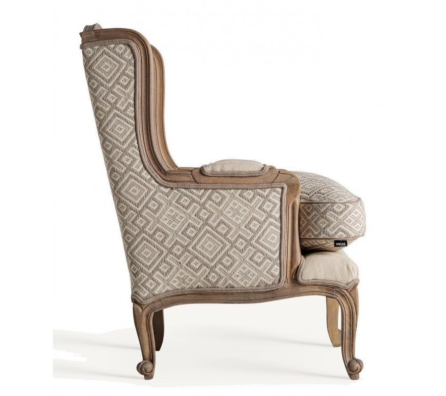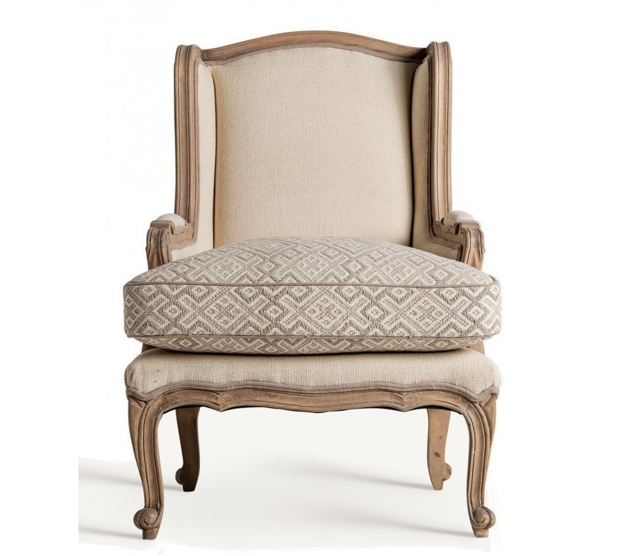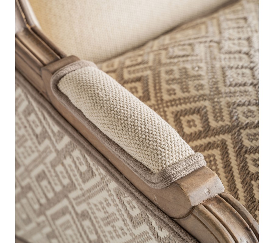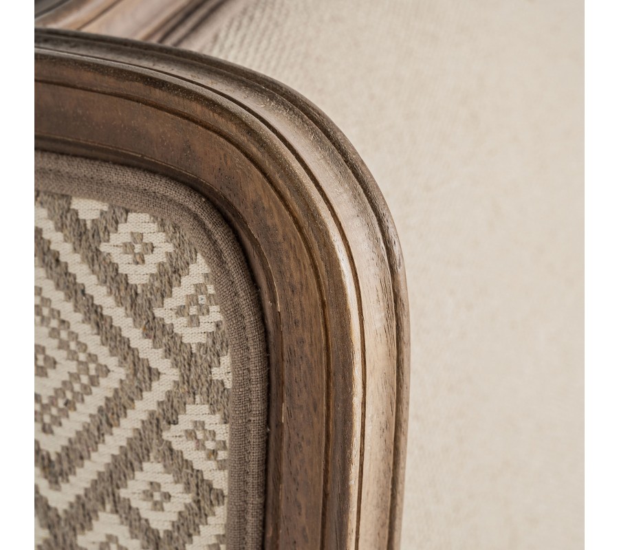 Luxusné kreslo Norod v provensálskom štýle s vidieckym a vintage nádychom spája klasickú eleganciu s prírodným spracovaním. Jeho masívny rám z mangového dreva v hnedej farbe je vyrezávaný, čo dodáva nábytku jedinečný charakter. Drevo nie je lakované, vďaka čomu si zachováva autentický prírodný vzhľad a jemne patinovaný vintage efekt. Nohy sú elegantne vytočené, čo podčiarkuje romantický a sofistikovaný štýl kresla.