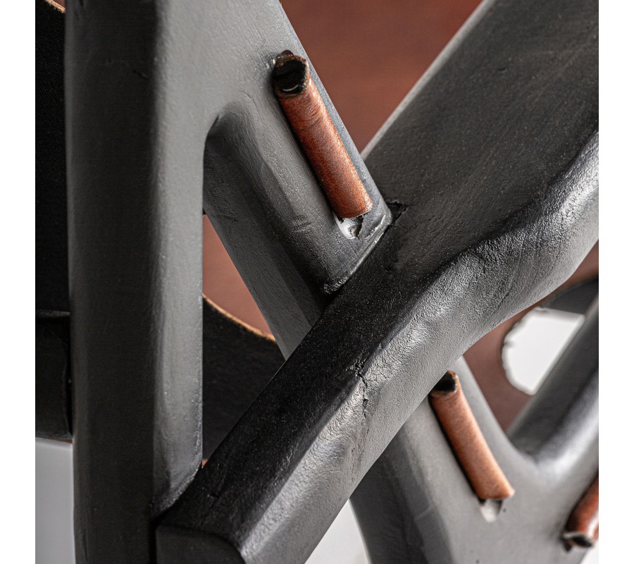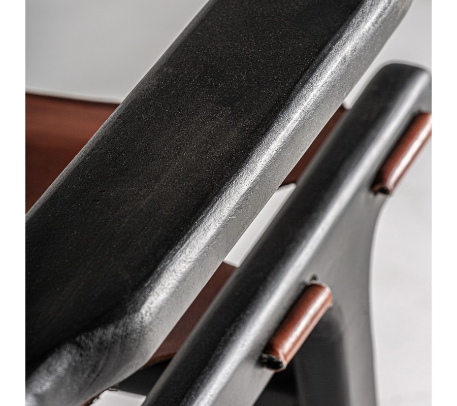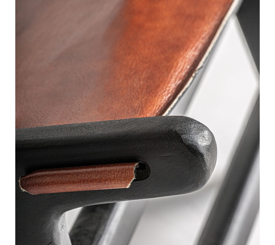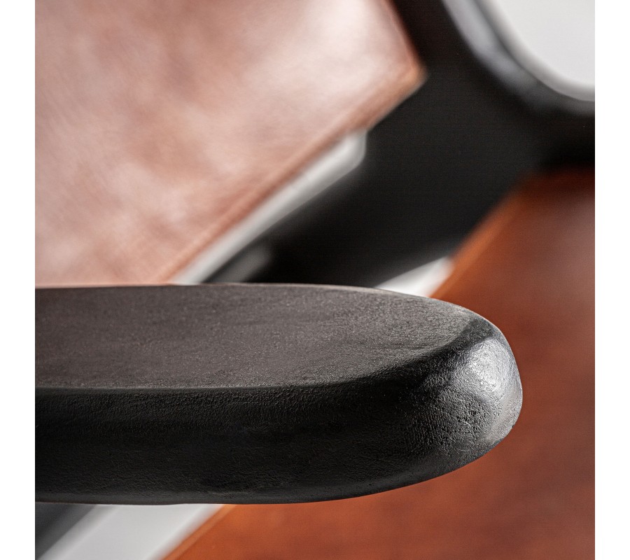 Tento model sa dokonale hodí do industriálnych, vintage alebo eklektických interiérov. Skvele vynikne v obývacej izbe, čitateľskom kútiku, ale aj v dizajnovom pracovnom priestore či moderne zariadenom podkroví. Jeho luxusný kožený povrch a čierne drevo sa výborne kombinujú s prírodnými materiálmi, ako sú masívne drevené stoly, kovové industriálne regály alebo textilné doplnky v neutrálnych odtieňoch. Pre kontrastný efekt ho možno zladiť s teplými mosadznými detailmi alebo rustikálnymi prvkami v hnedom a čiernom prevedení.