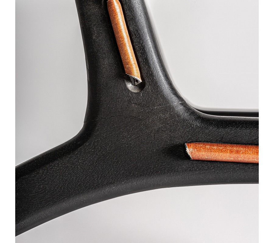 Konštrukcia je stabilná a pevná, pozostáva zo štyroch drevených nožičiek so spojením v podobe dvoch horizontálnych tyčí v prednej a dvoch v zadnej časti, ktoré zvyšujú stabilitu. Ďalšia tyč je umiestnená za chrbtovou opierkou, čím dodáva kreslu vizuálnu symetriu aj pevnosť. Opierky na ruky sú drevené, jemne zaoblené, čo zabezpečuje komfort pri sedení.