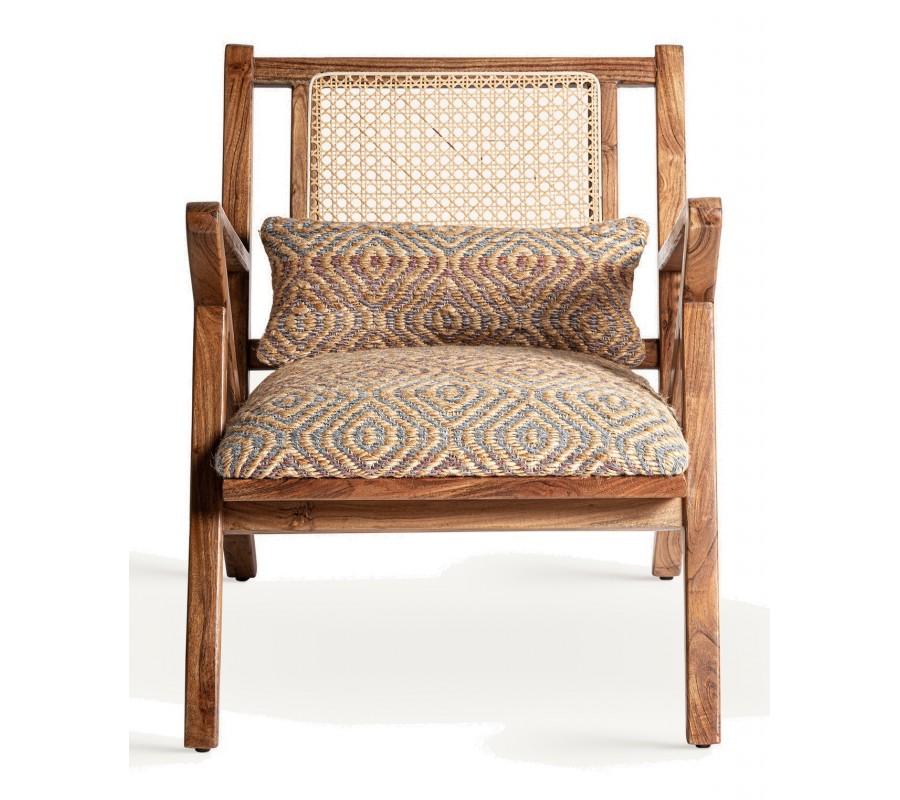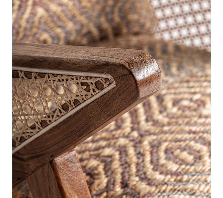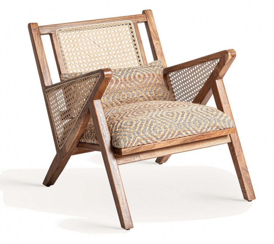 Kreslo Iudis vás očarí krásnou prírodných materiálov v spojení s unikátnym nádychom etno štýlu. Drevo prinesie do vašej obývačky pocit tepla a elegantný viedenský výplet v kombinácii so vzorovaným poťahom bude zasa pôsobiť ako eklektický dekoračný element.