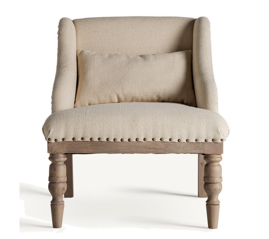 Luxusné provensálské čalúnené krémové kreslo Norod s vybíjanými nitmi so vzorom a masívnymi hnedými nožičkami 75 cm
