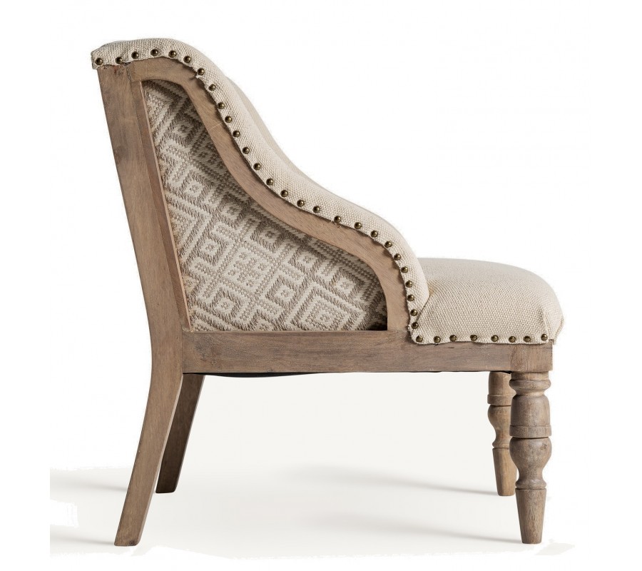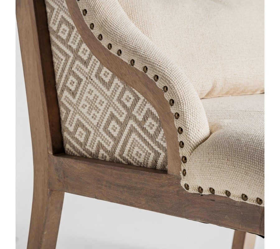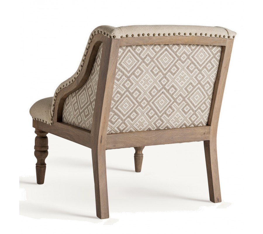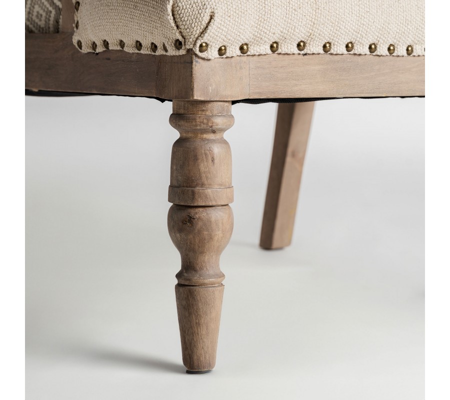 Luxusné kreslo Norod je výnimočný kúsok v provensalskom a vintage štýle, ktorý spája elegantnú klasiku s prírodným charakterom. Jeho masívna drevená konštrukcia z mangového dreva v hnedej farbe je ručne vyrezávaná, pričom predné nožičky zdobia detailné rezby, typické pre vidiecky štýl. Keďže drevo nie je lakované, kreslo si zachováva autentický prírodný vzhľad a jemnú patinu, ktorá mu dodáva historický nádych.
