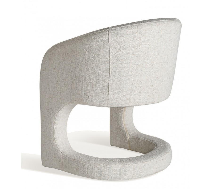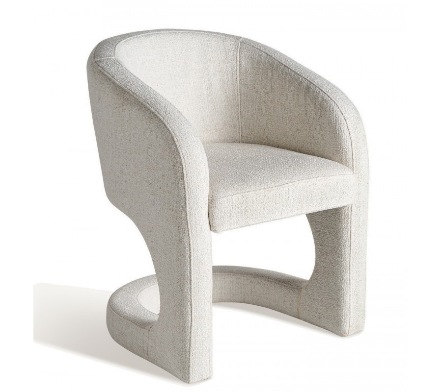 Štýlové kreslo Ria vyniká svojím atypickým dizajnom, kde jednotná konštrukcia plynulo prechádza z podnože do operadla aj bočných opierok. Oblá podnož v tvare obrátaného písmena U dodáva kreslu dynamický a futuristický vzhľad, pričom vytvára pocit ľahkosti a vzdušnosti. Tento plynulý prechod medzi nohami, operadlom a podrúčkami vytvára dokonale harmonický tvar, ktorý pôsobí ako sochárske dielo.