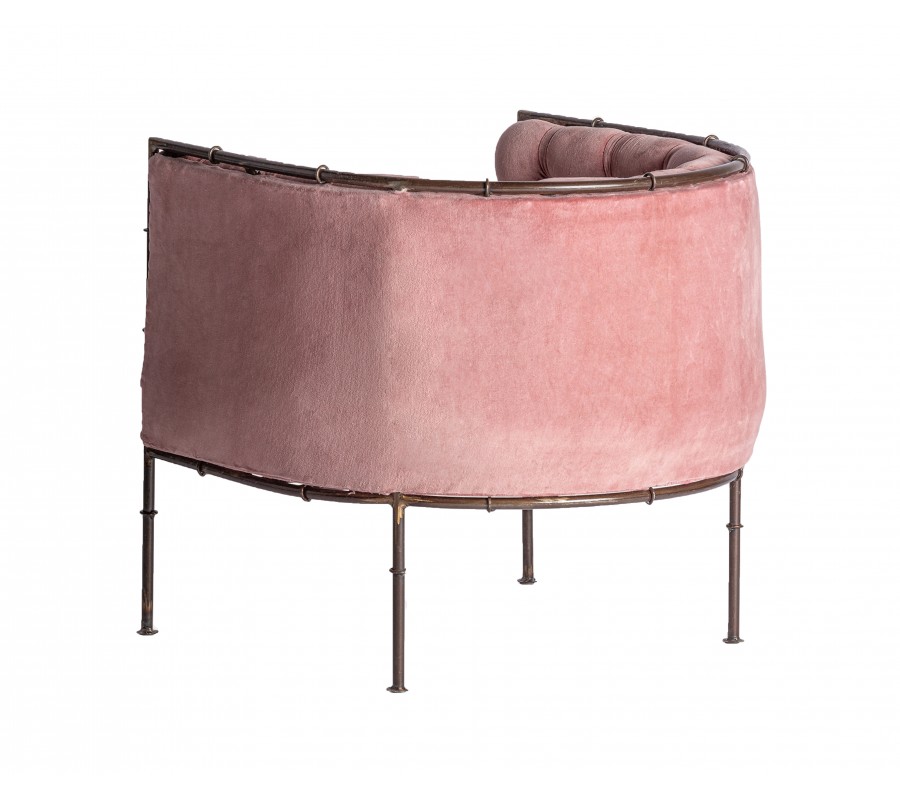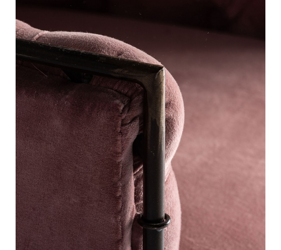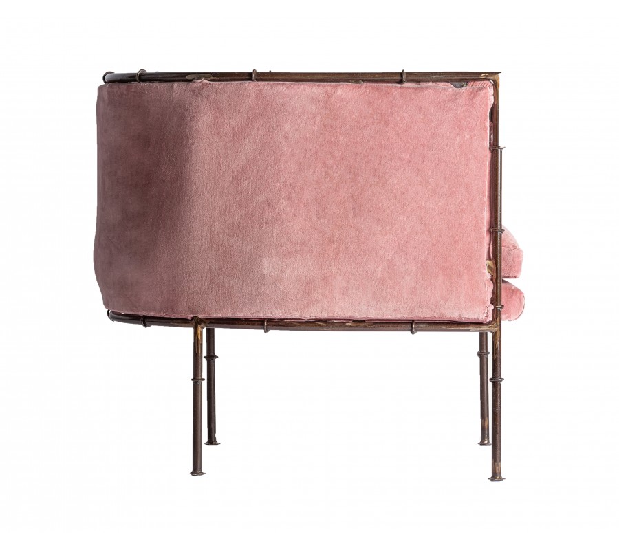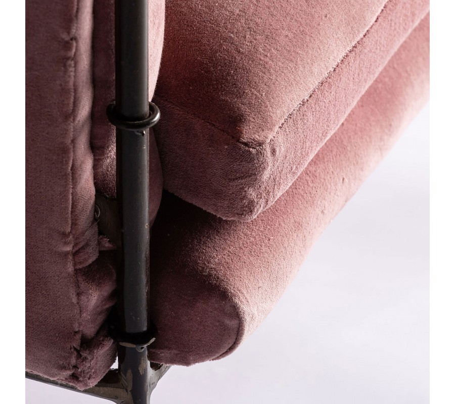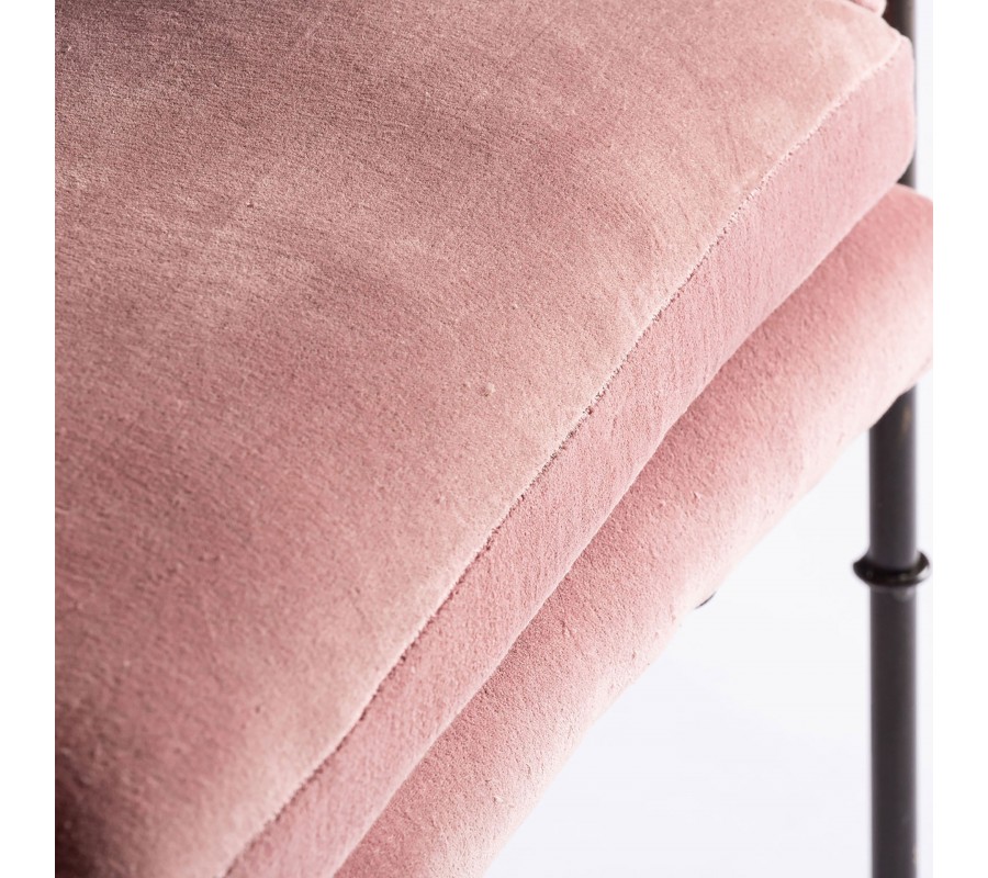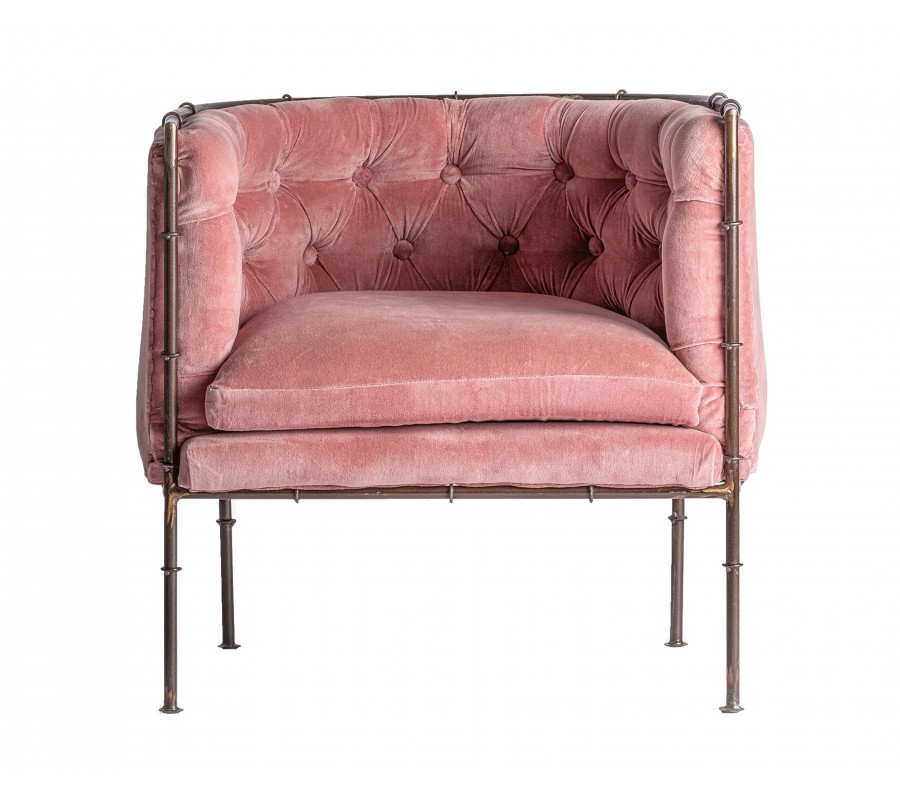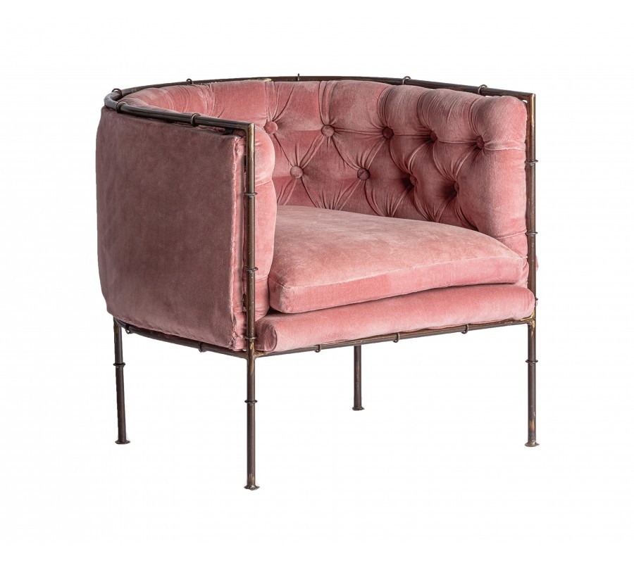 Luxusné chesterfield vintage čalúnené kreslo Kazer s ružovým zamatovým bavlneným poťahom a kovovou zlatou konštrukciou 72 cm
