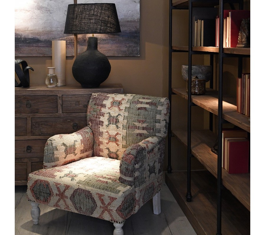 Kreslo Korian je ideálne do vidiecky ladených, etno alebo vintage interiérov, kde vynikne ako samostatný prvok pri knižnici, v čitateľskom kútiku alebo ako akcentný prvok k drevenému nábytku. Vďaka svojmu dizajnu a farebnosti sa dá tiež krásne kombinovať s neutrálnymi tónmi, prírodnými materiálmi a ručne vyrábanými dekoráciami.