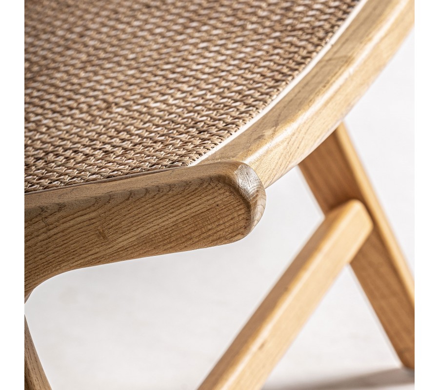 Kreslo má pevný rám z masívneho dreva, v ktorom dominujú rovné línie. Sedacia časť aj chrbtová opierka majú obdĺžnikový tvar a sú mierne zošikmené, čo zabezpečí maximálny komfort pri sedení. Tvar kresla je inšpirovaný skladacími stoličkami v koloniálnom štýle, vďaka čomu pôsobí ľahkým vzdušným dojmom, no zároveň si zachováva charakter luxusu.
