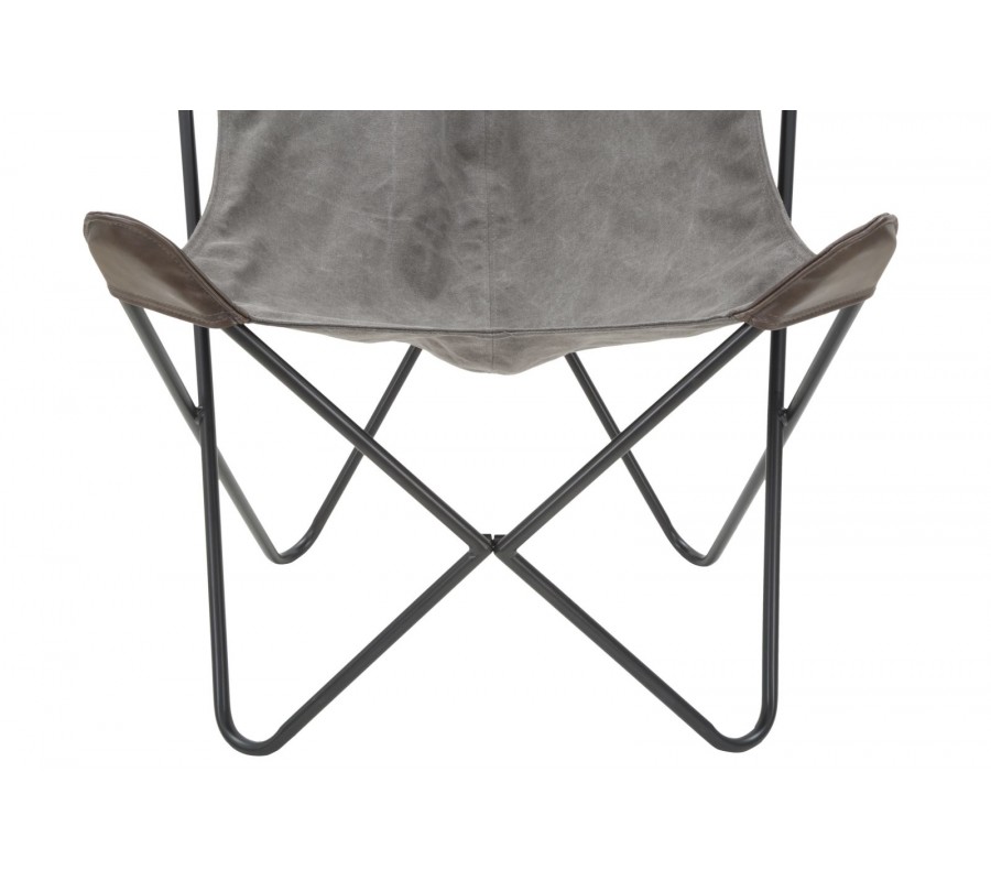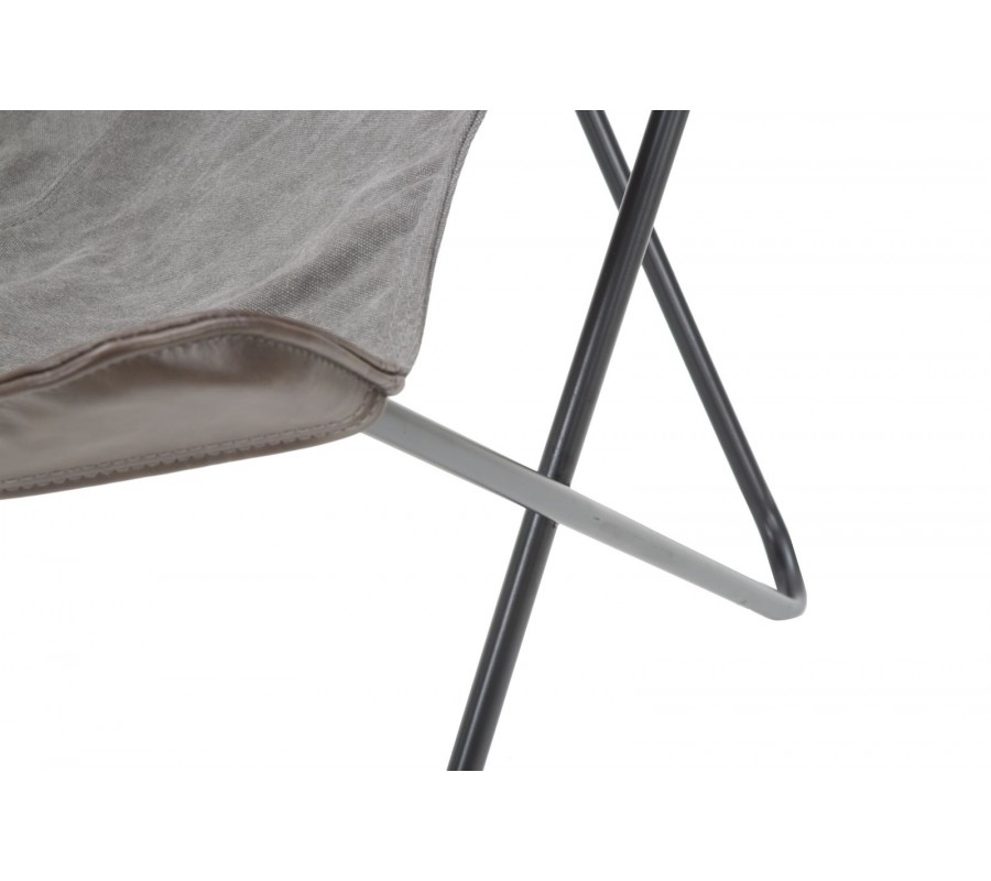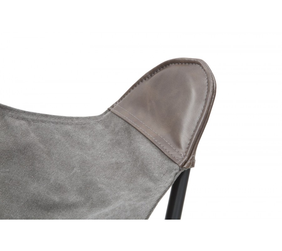 Kreslo Glady zaujme na prvý pohľad svojím atypickým tvarom, ktorý pôsobí voľne, vzdušne a zároveň stabilne. Vyznačuje sa čiernou kovovou konštrukciou s kríženými prvkami a pružným textilným sedadlom so sivým povrchom, ktorý sa mierne prispôsobuje telu pri sedení. Rohy a kraje poťahu sú spevnené tmavšími koženkovými detailmi, ktoré zvyšujú odolnosť aj estetickú hodnotu.