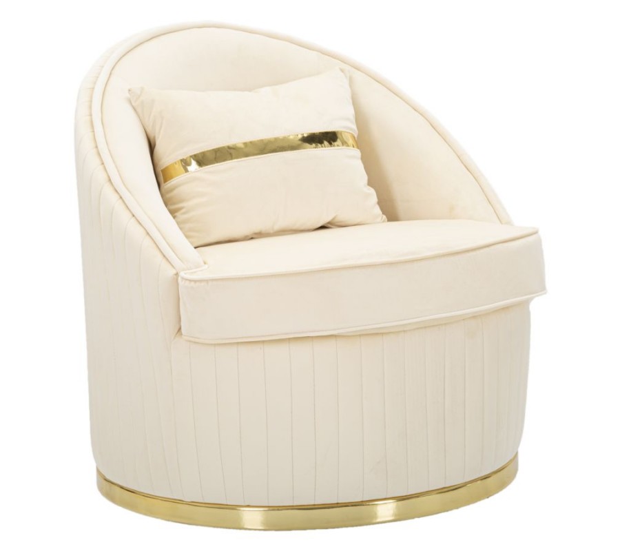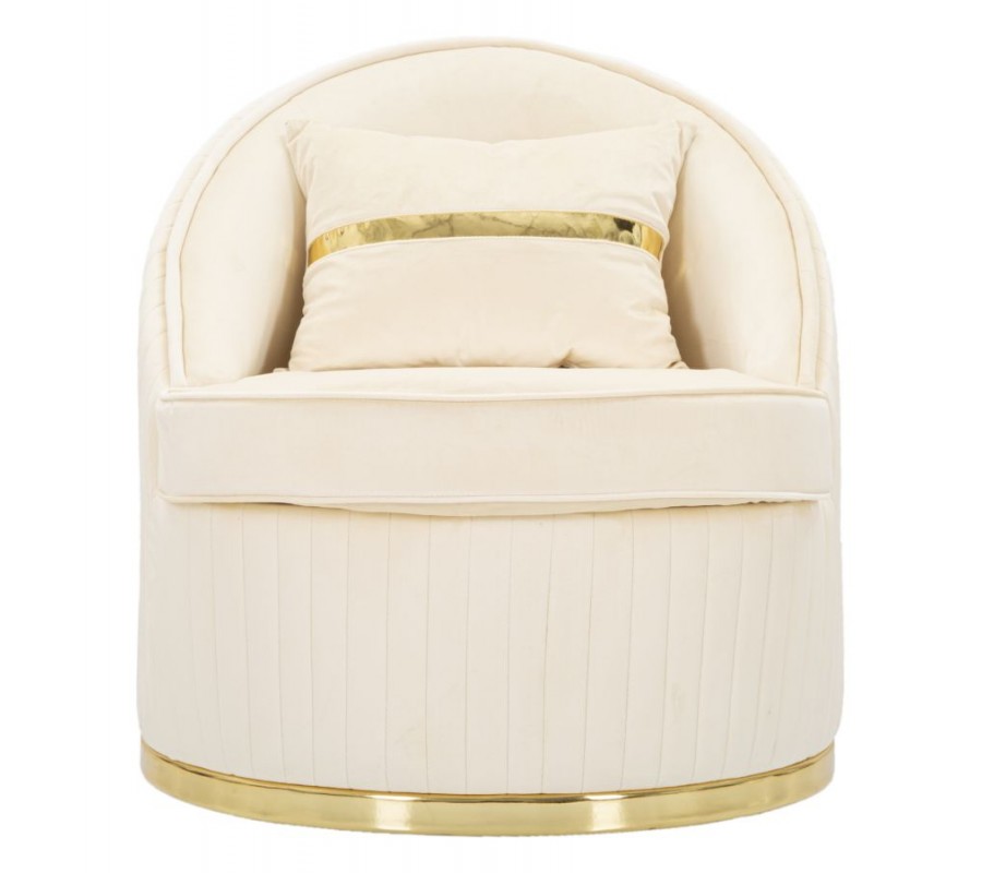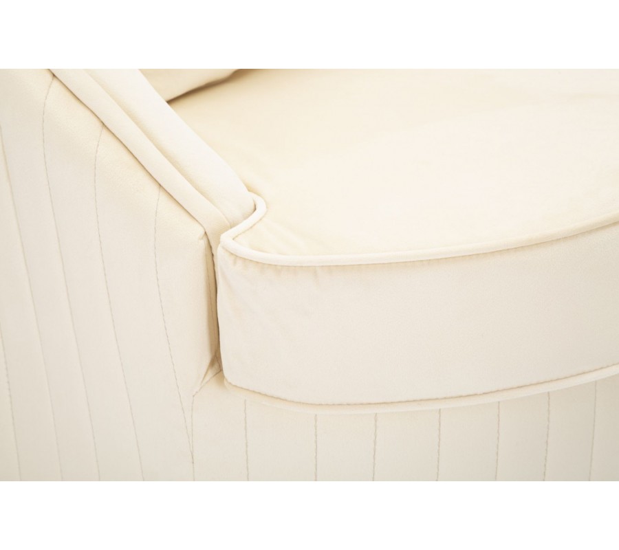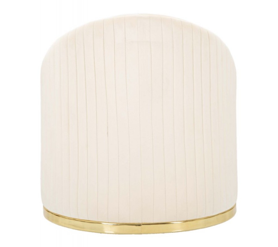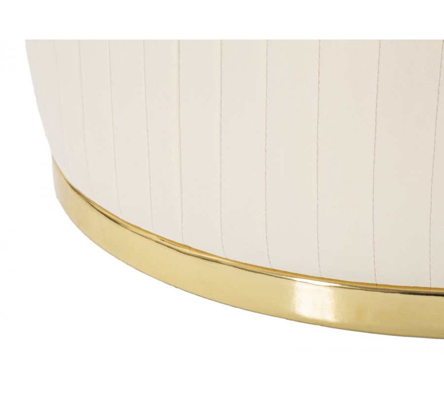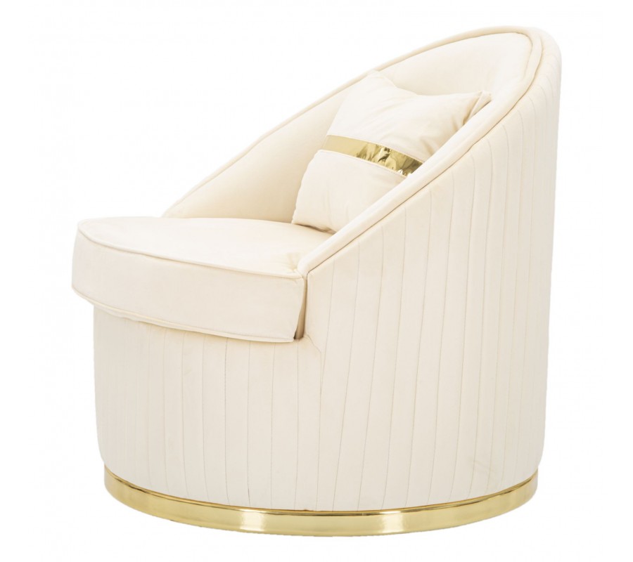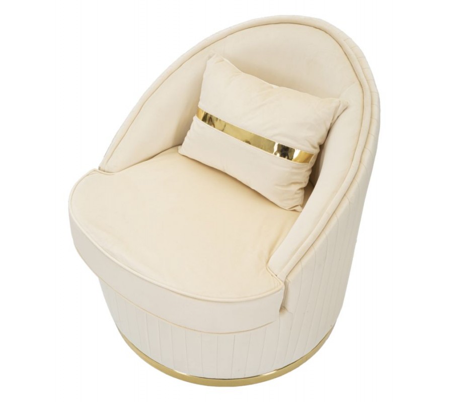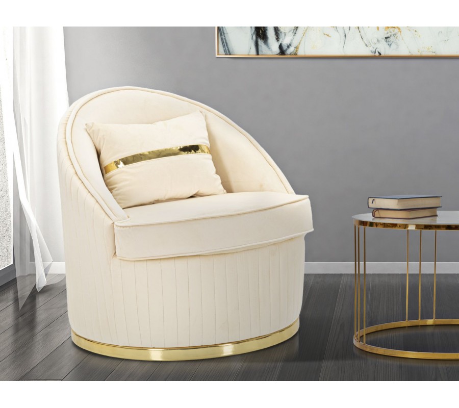 Štýlové art deco okrúhle krémové zamatové kreslo Bellaria so zlatými detailmi a vertikálnym prešívaním 80 cm