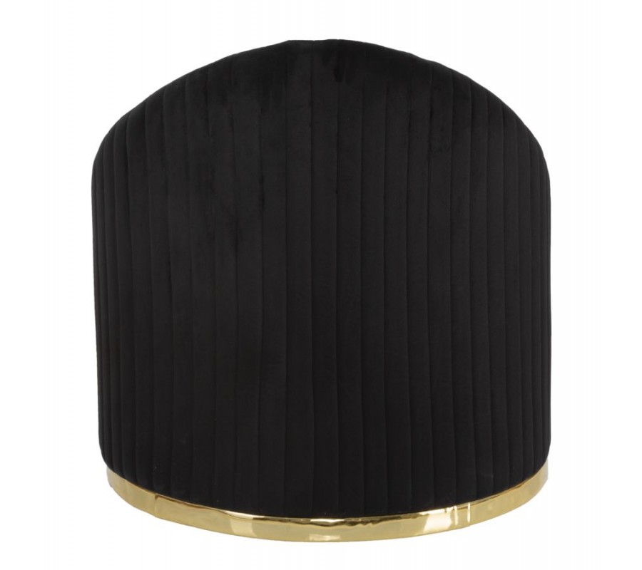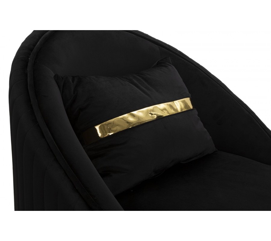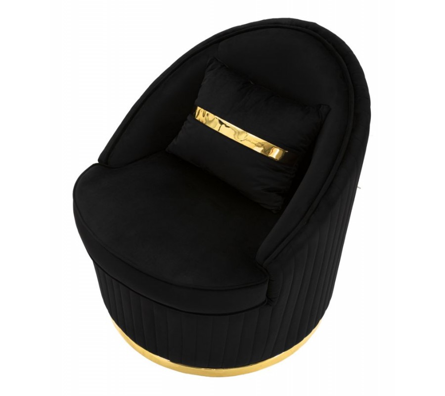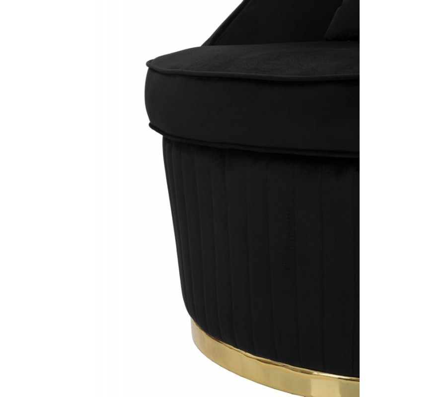 Štýlové art deco čierne okrúhle zamatové kreslo Bellaria so zlatými detailmi a štvorcovým vankúšom 80 cm