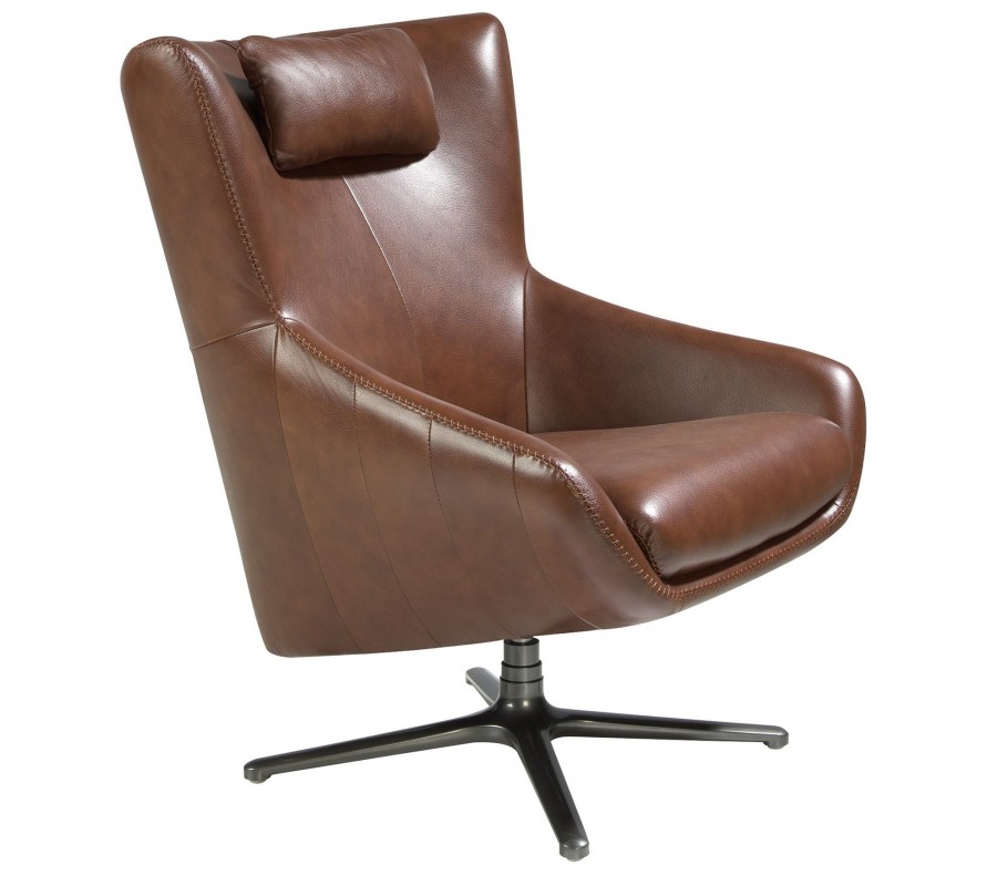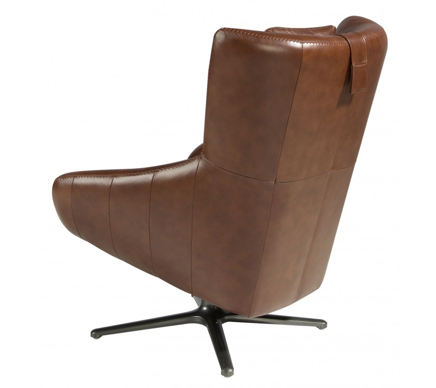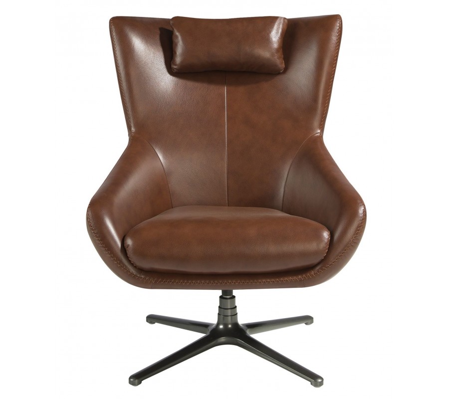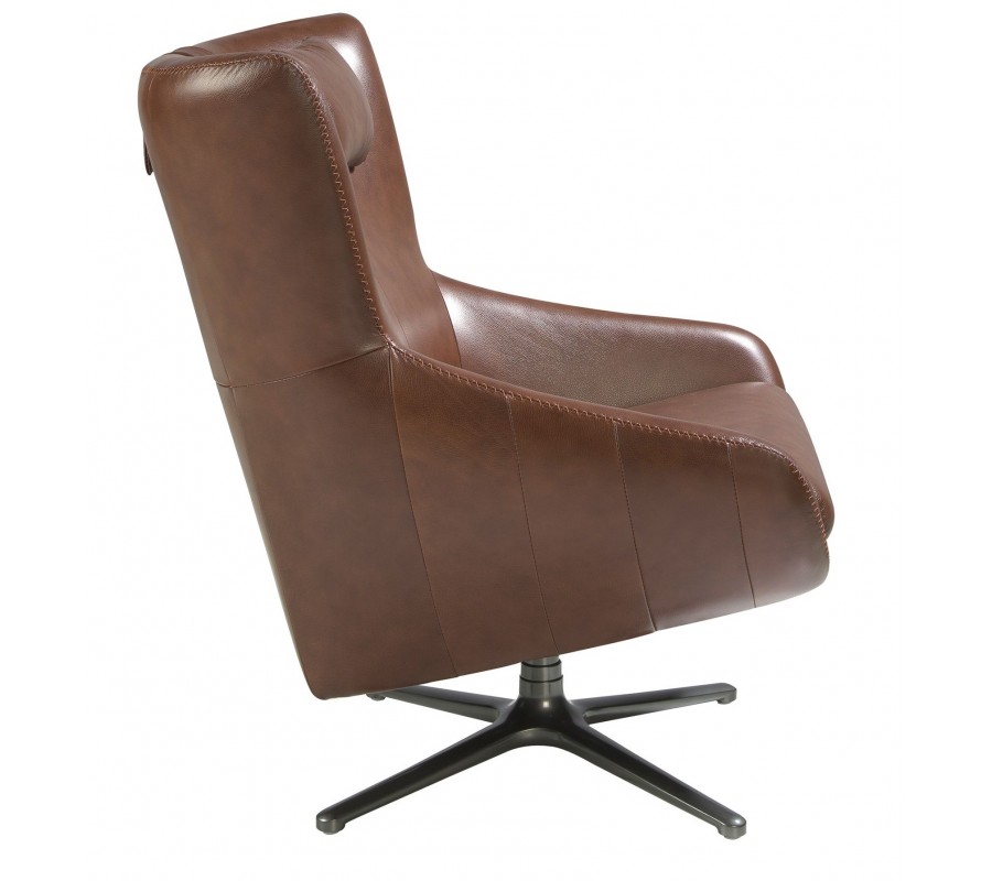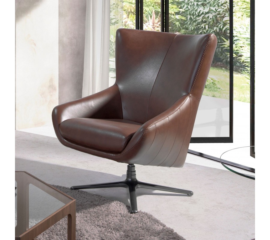 Luxusné otočné moderné kožené kreslo Junas v hnedej farbe s čiernou kovovou nohou 100 cm
