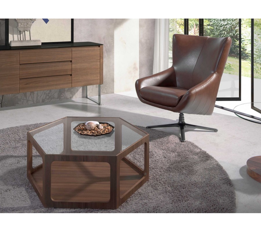 Pracovné kreslo Junas predstavuje dokonalé spojenie funkčnosti, pohodlia a exkluzívneho moderného talianskeho dizajnu. Je čalúnené pravou kožou v bohatej hnedej farbe, ktorá pôsobí elegantne, luxusne a vkusne zapadne do moderného interiéru pracovne, študovne alebo štýlovej kancelárie. Kožený povrch je jemne lesklý a vyniká decentným prešívaním pozdĺž bočných línií, ktoré zvýrazňuje zaoblený tvar kresla a precízne remeselné spracovanie.