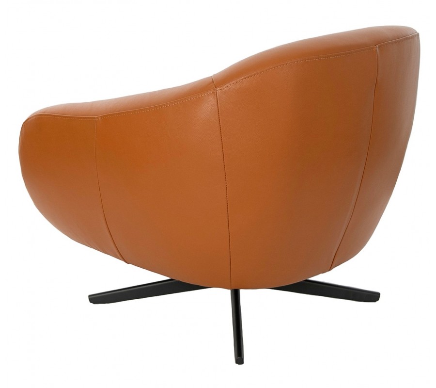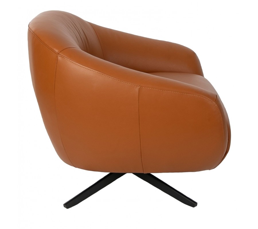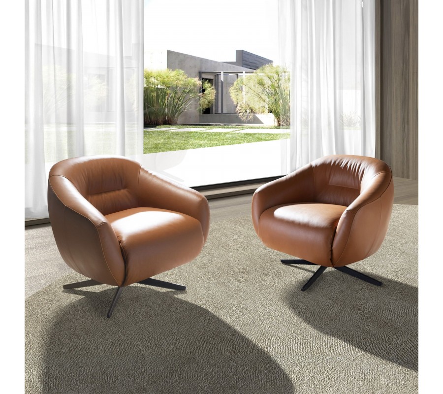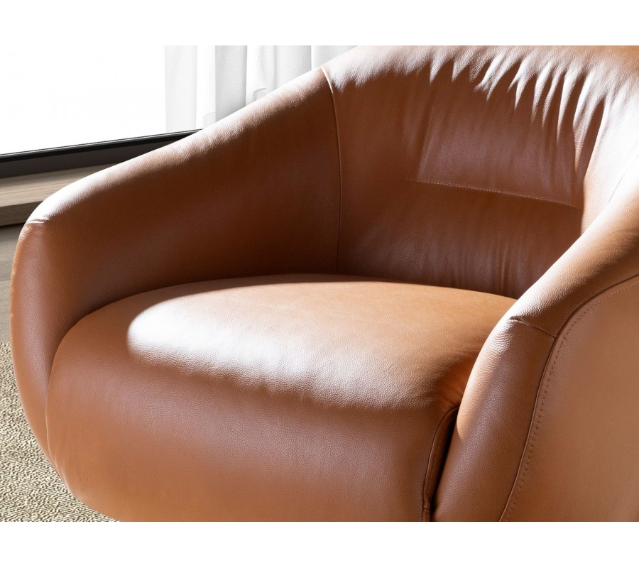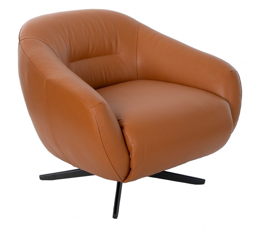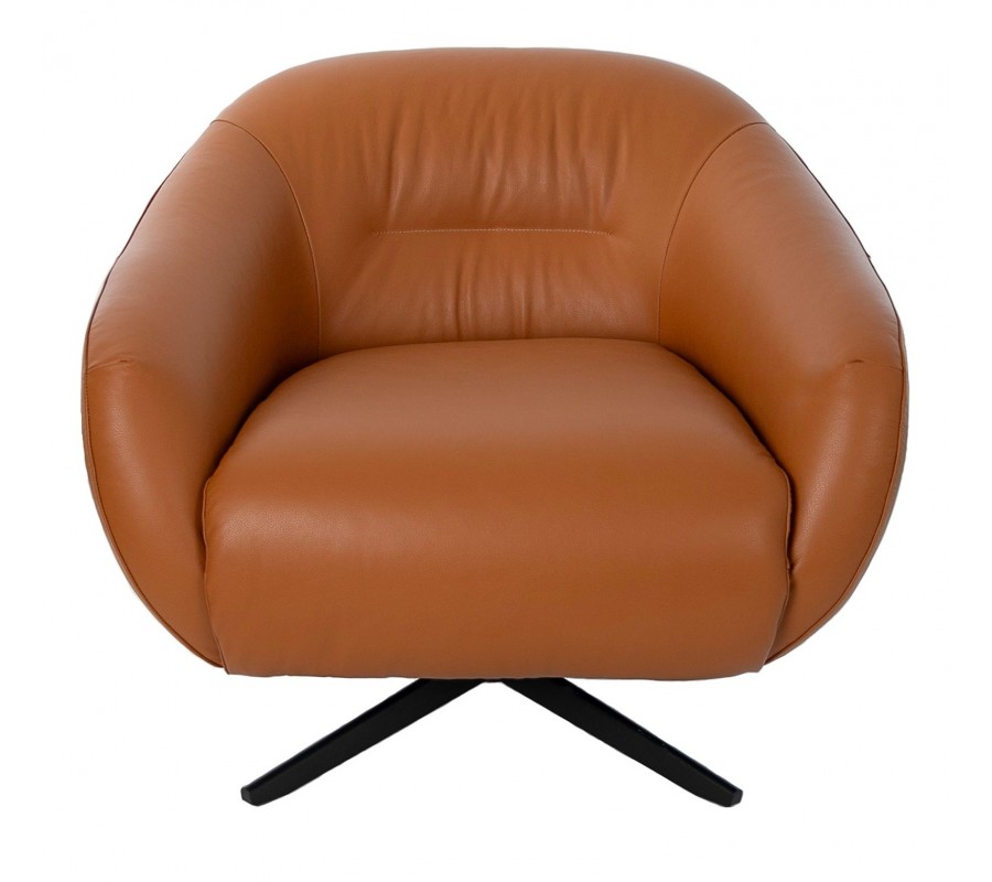 Luxusné moderné otočné kreslo Vita Naturale s koňakovo hnedým poťahom z pravej kože a kovovou podstavou 86 cm