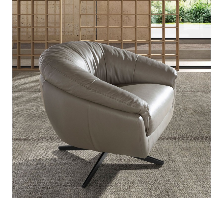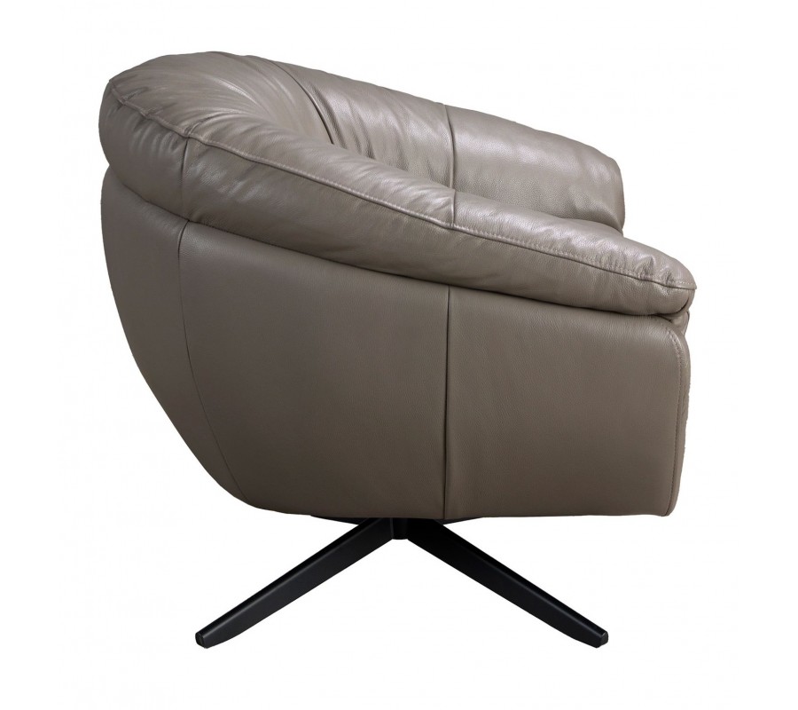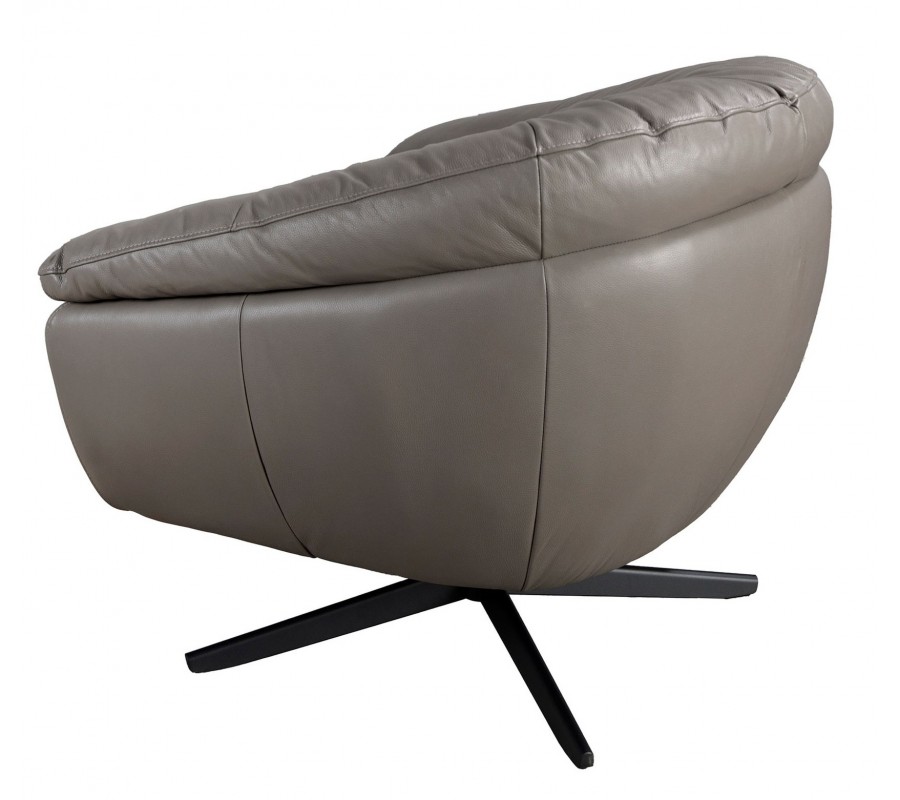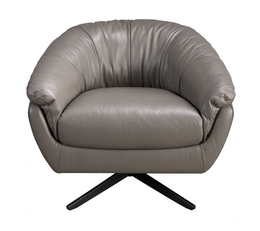 Luxusné moderné otočné kreslo Forma Moderna so sivým poťahom s pravej kože a kovovou podstavou 85 cm