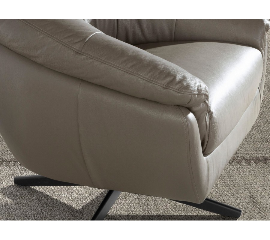 Kreslo má otočnú podstavu, vyrobenú z nehrdzavejúcej ocele. Rozvetvuje sa do štyroch zošikmených ramien, ktoré zaručujú výbornú stabilitu nábytku. Pokrýva ju čierny živicový náter, ktorý výborne korešponduje so sivými tónmi kože a dodáva nábytku jemný nádych industriálneho štýlu.
