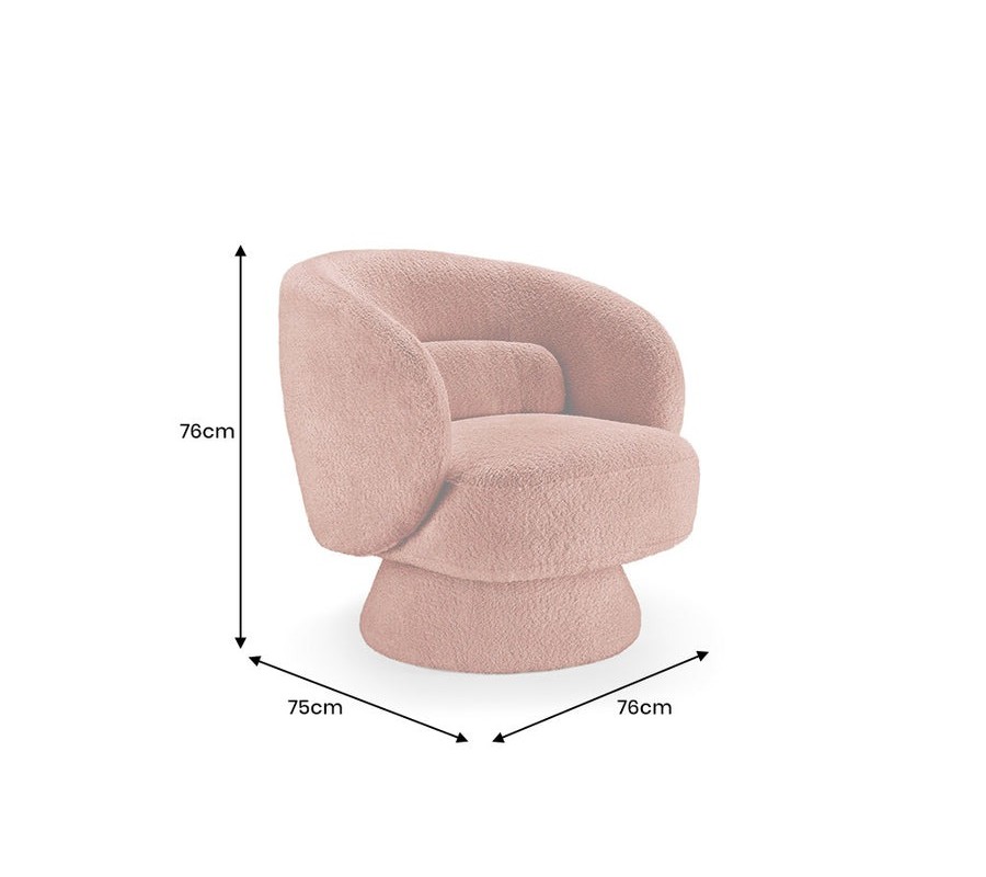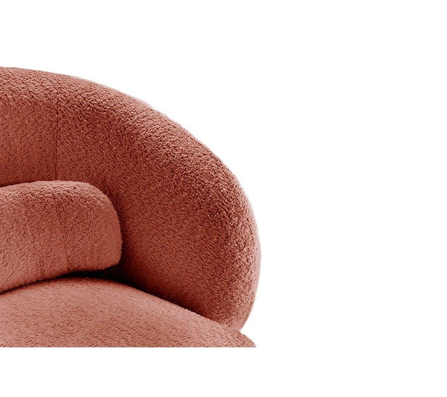 Štýlové čalúnené glamour kreslo Elian s retro nádychom spája originálny dizajn s maximálnym pohodlím. Okrúhly tvar kresla je podčiarknutý mäkkými líniami a elegantným bouclé poťahom v terakotovo oranžovej farbe, ktorý pôsobí teplo, útulne a luxusne zároveň. Jemná štruktúra poťahu dodáva povrchu vizuálnu hĺbku a príjemný dotyk.