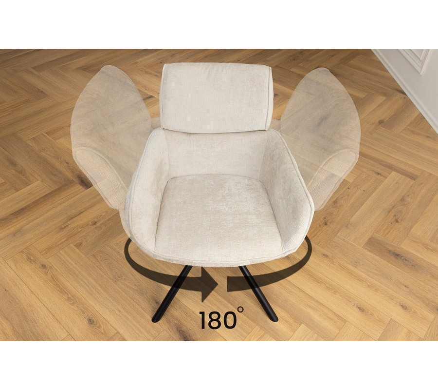 Otočné kreslo Chenill sa dokonale hodí do obývačky, jedálne alebo pracovne zariadenej v modernom štýle. Jednoducho sa kombinuje s masívnym drevom, s doplnkami v jemných tónoch béžovej, šedej, alebo pastelovej ružovej.