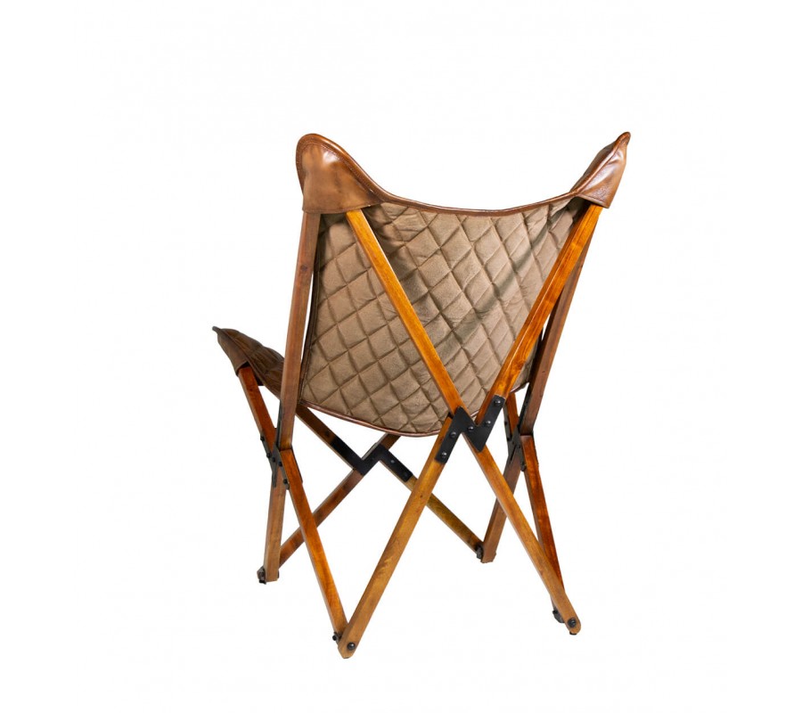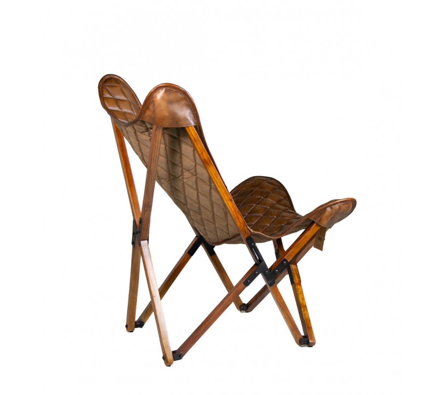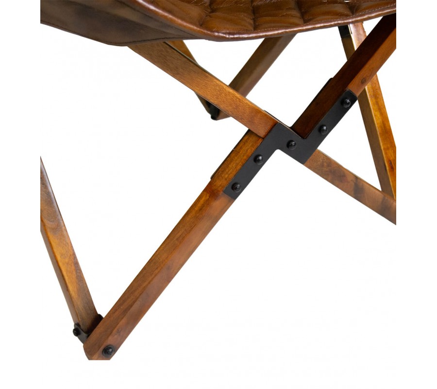Koloniálna hnedá kožená skladacia stolička Jantara s kosoštvorcovým vzorom s drevenou konštrukciou 97 cm