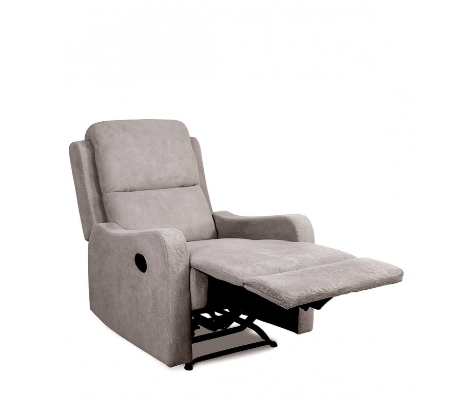 Moderné čalúnené relaxačné kreslo Martin s poťahom v sivej farbe s polohovateľnou chrbtovou opierkou a podnožkou 95 cm