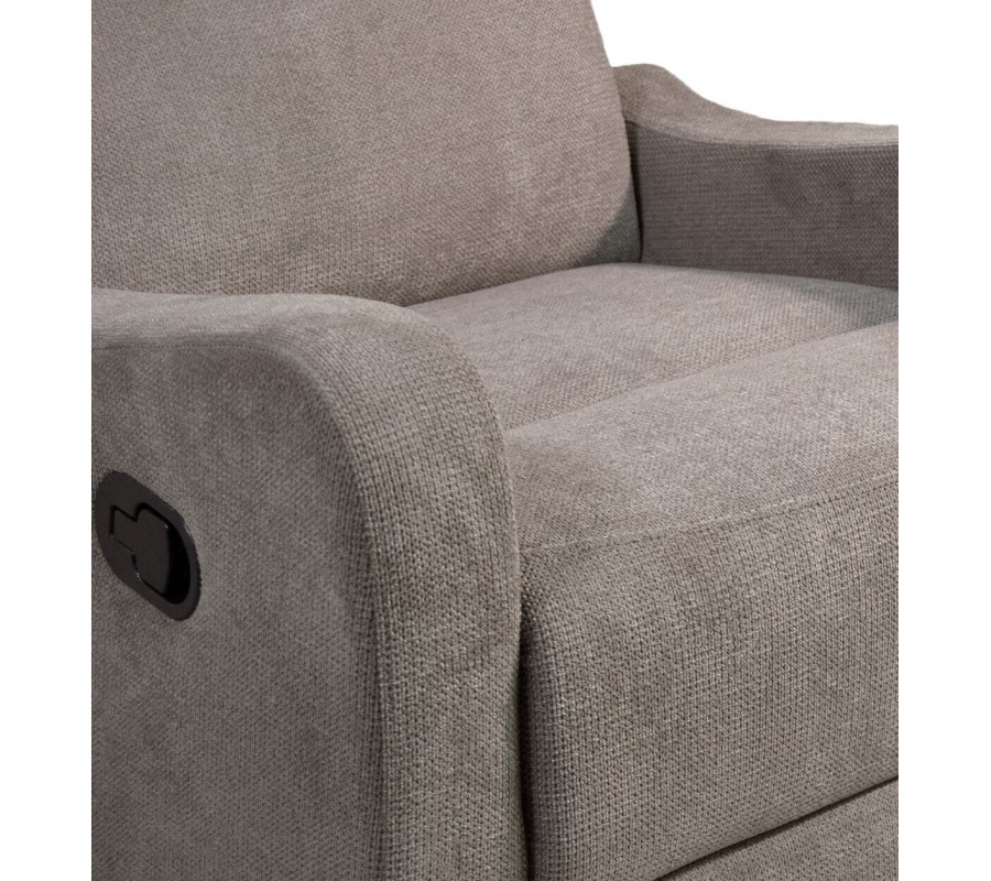 Kreslo má pevnú kovovú konštrukciu v čiernej farbe. Penové čalúnenie zaručuje pohodlné opretie a textilný poťah je príjemný na dotyk. Má výrazné tkanie, ktoré vytvára jemnú vizuálnu štruktúru. Elegantná sivá farba v odtieni taupe má béžové podtóny, ktoré jej dodávajú teplý charakter.