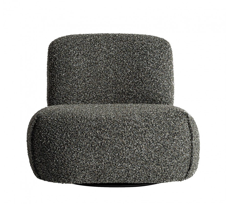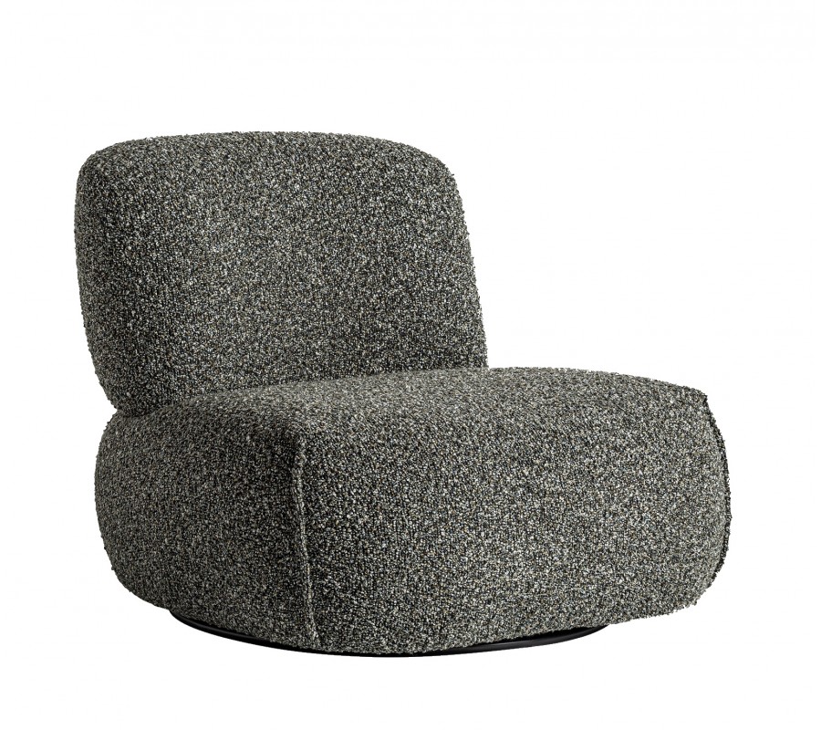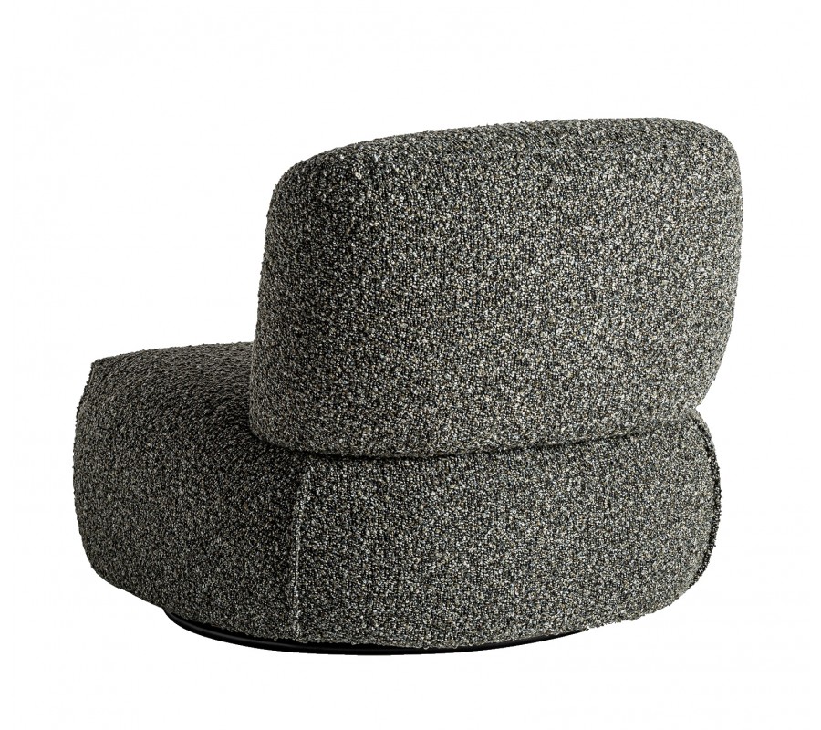 Luxusné moderné okrúhle kreslo Claude bez bočných opierok s melírovaným buklé poťahom v odtieňoch sivej a zelenej 84 cm