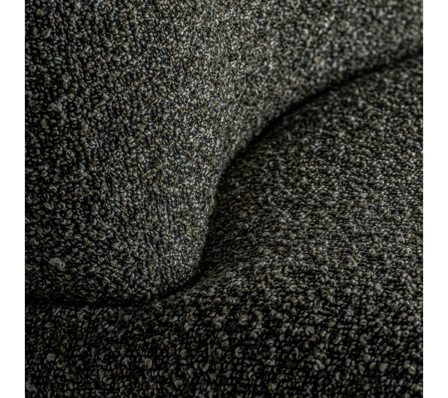 Kreslo má kvalitný a pevný rám z masívneho dreva, ktorý pokrýva mäkká penová výplň. Povrch je potiahnutý textíliou z mikrovlákna s výraznou buklé štruktúrou. Je príjemný na dotyk a v kombinácii s melírovaným vláknom v tmavších a svetlejších odtieňoch sivej a zelenej vytvára bohatý mramorovaný vizuál. Mikrovlákno je tiež mimoriadne odolné a nábytok tak vydrží krásny dlhé roky.