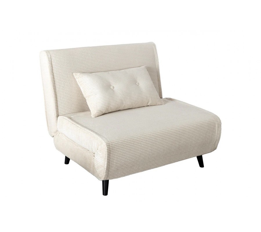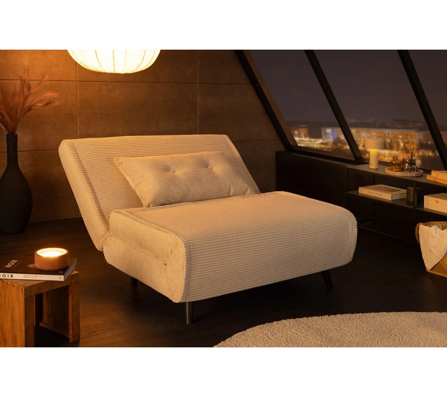 Moderné škandinávske rozkladacie kreslo Kurt s béžovým kordovým poťahom a čiernymi nožičkami 100 cm