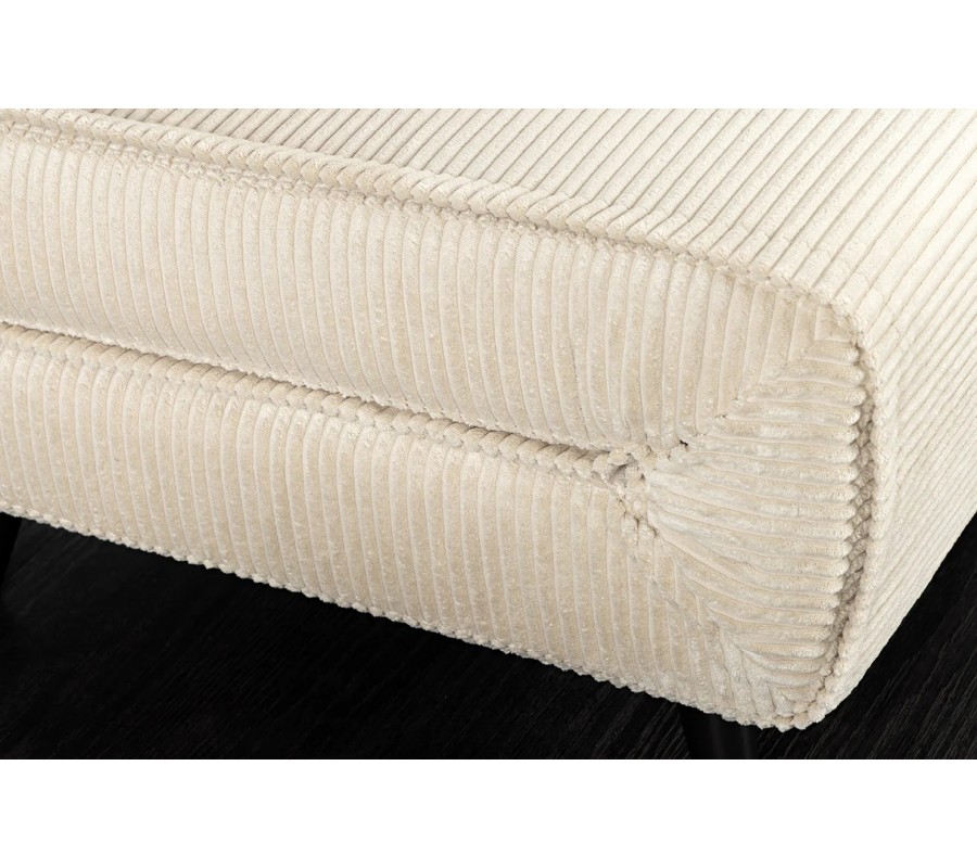 Moderné škandinávske multifunkčné kreslo Kurt v sebe spája moderný dizajn a praktickú funkčnosť. Čalúnené je kvalitným menčestrovým poťahom v béžovej farbe, ktorý pôsobí útulne, mäkko a zároveň je príjemný na dotyk. Rebrovaná štruktúra látky dodáva povrchu jemnú dynamiku a zvyšuje estetickú hodnotu.