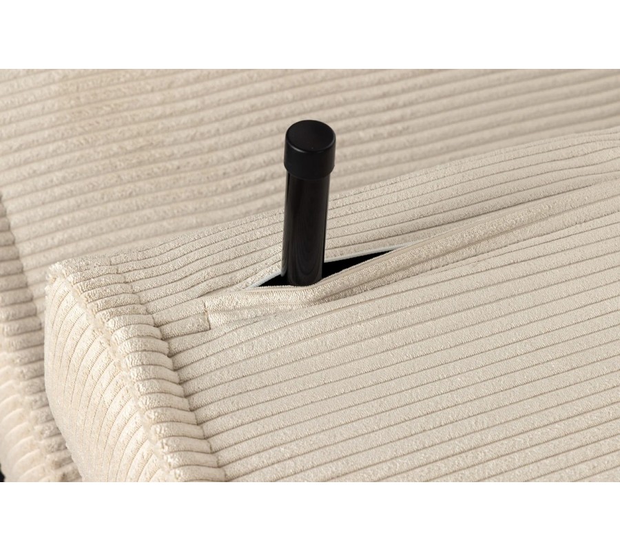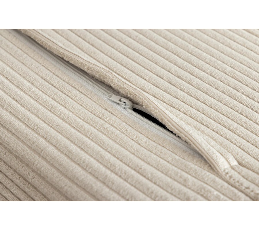 Povrch tvorí poťah z mikrovlákna s menčestrovou (kordovou) povrchovou úpravou v elegantnom béžovom odtieni. Tento poťah je odolný a dobre drží tvar, čo z neho robí ideálny materiál na každodenné používanie.