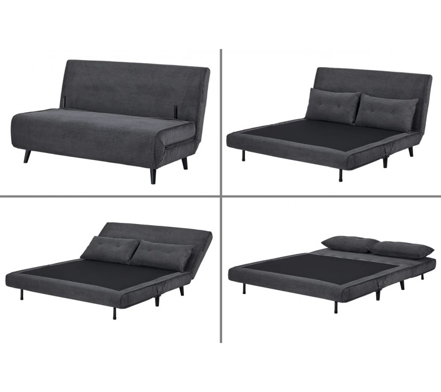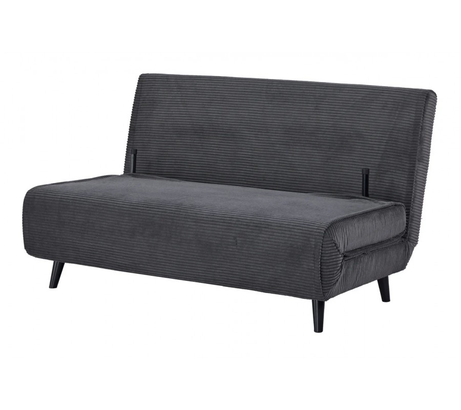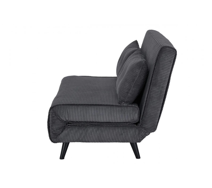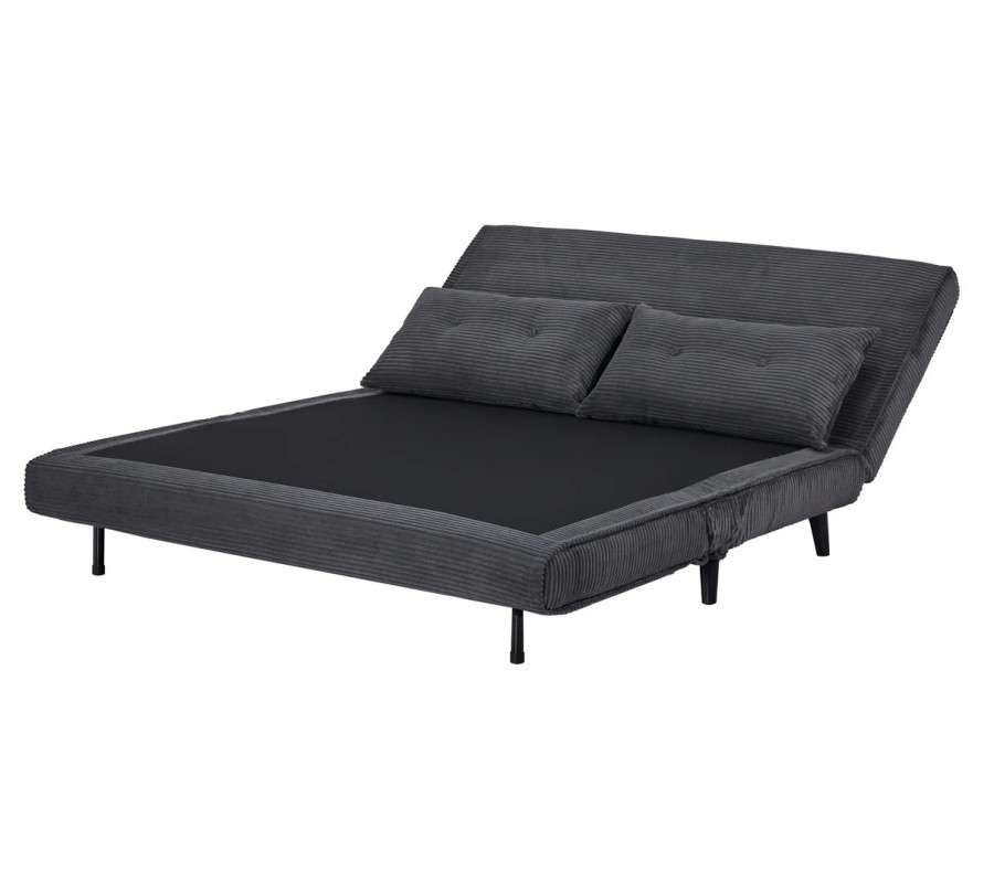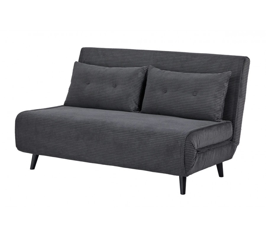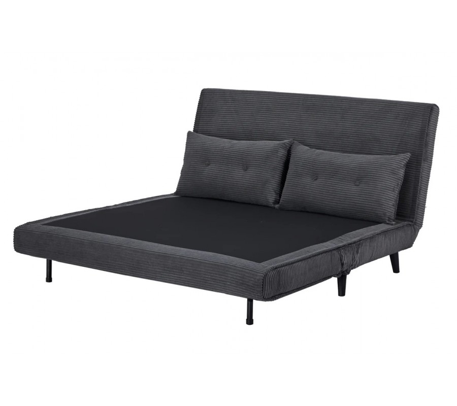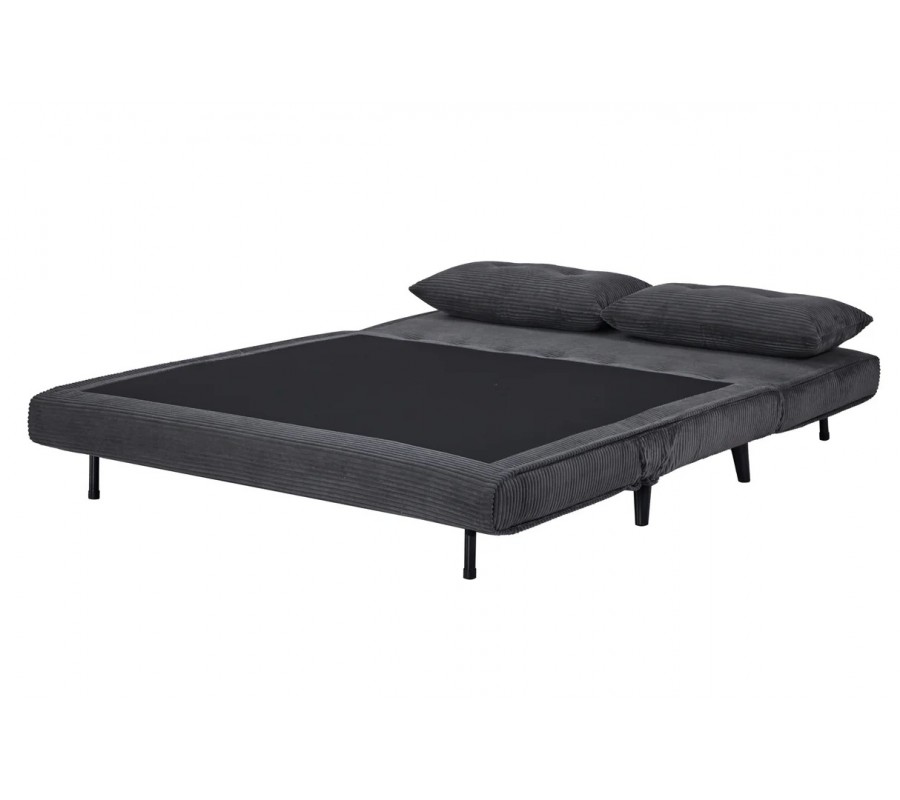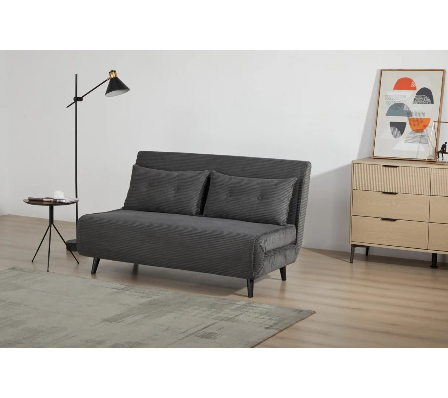 Dizajnové dvojmiestne rozkladacie kreslo Kurt s menčestrovým poťahom v sivej farbe s čiernymi nožičkami 140 cm
