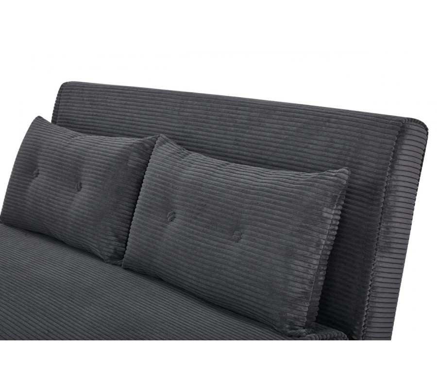 Moderné rozkladacie kreslo Kurt vo verzii pre dve osoby ponúka kombináciu moderného vzhľadu a funkčnosti. Povrch tvorí jemne vrúbkovaný menčester v sivom odtieni, ktorý pôsobí elegantne, útulne a príjemne na dotyk. Textúra látky pridáva kreslu hĺbku a charakter, vďaka čomu sa stane dominantným prvkom aj v minimalisticky zariadenom interiéri.