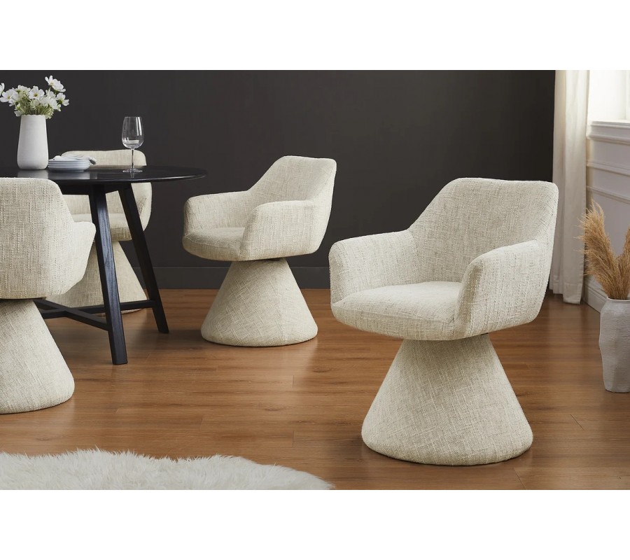 Dizajnová moderná otočná jedálenská stolička Sonu s bočnými opierkami s celoplošným ženilkovým poťahom v béžovej farbe 80 cm