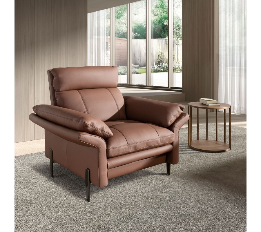Kreslo Vita Naturale je dokonalým spojením luxusného vizuálu, súčasného talianskeho dizajnu a maximálneho komfortu. Pravá koža v hnedej farbe prinesie do priestoru pocit tepla a prírodnej harmónie.