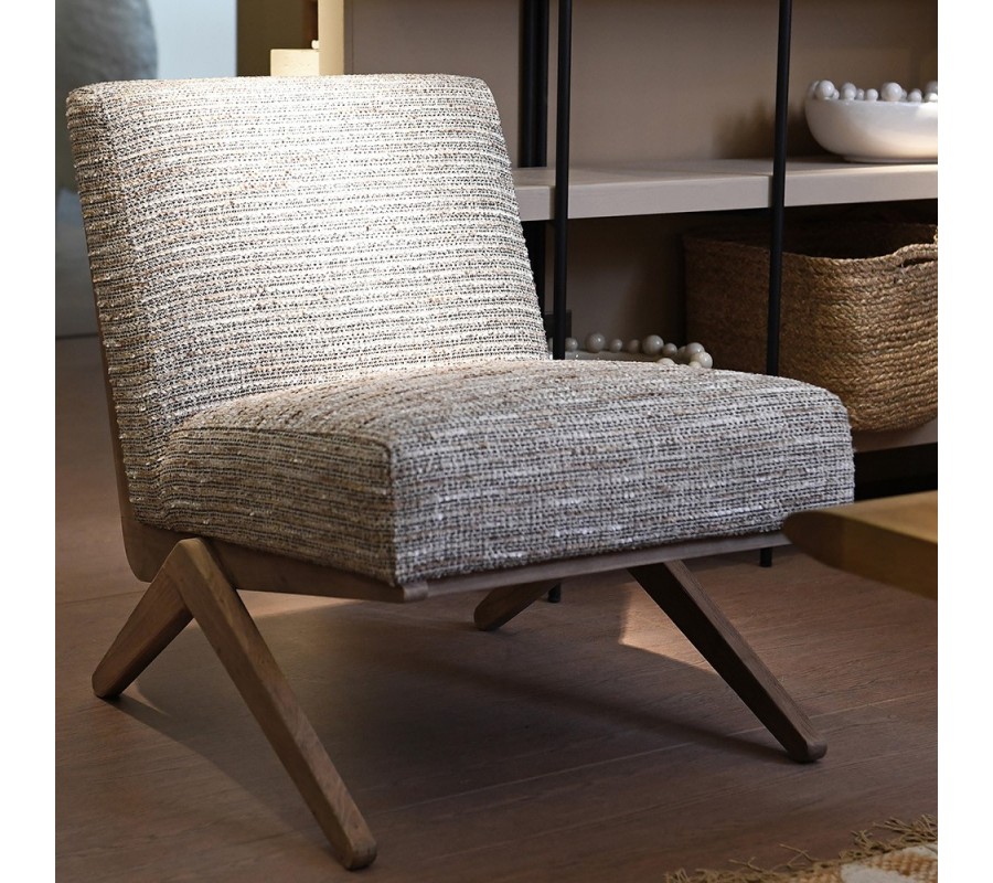 Kreslo Axis v sebe spája retro eleganciu a uvoľnený komfort. Jeho nízky tvar so širokým sedadlom pôsobí ležérne, no zároveň štýlovo a premyslene. Poťah z kvalitnej tkaniny s podielom viskózy v odtieňoch sivej, hnedej a béžovej vytvára jemne štruktúrovaný efekt, ktorý dodáva povrchu hĺbku a vizuálne teplo.