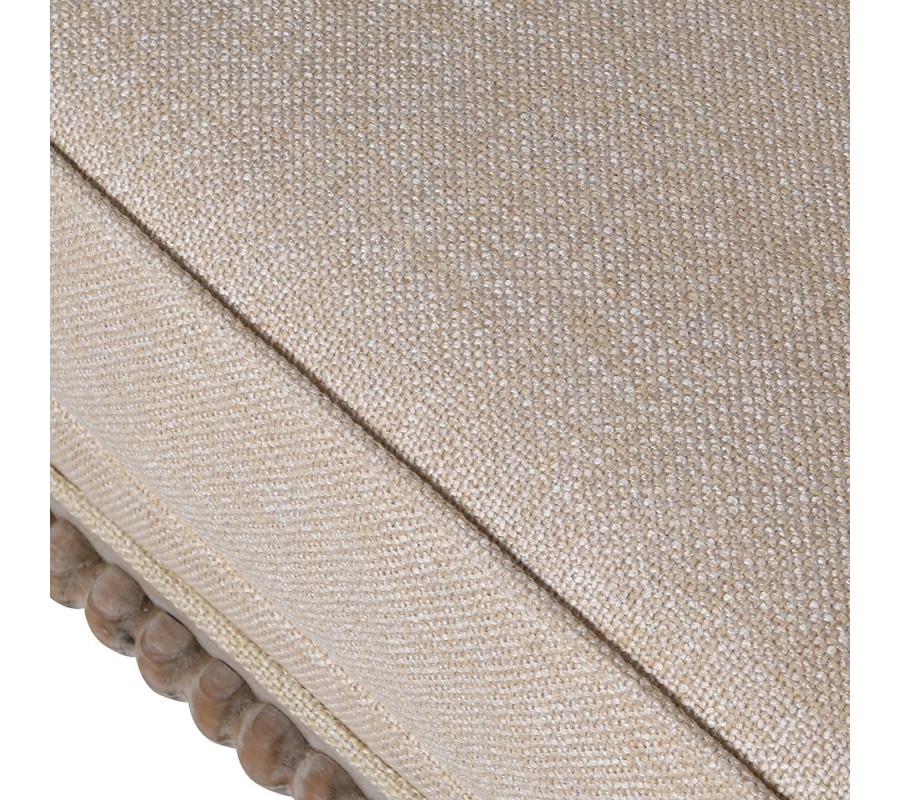 S drevom výborne korešponduje poťah v svetlej béžovej farbe, vyrobený zo zmesi ľanu a mikrovlákna. Je tak príjemný na dotyk a zároveň mimoriadne odolný. Prirodzená nerovnomerná farebnosť ľanu dodáva textílii jemnú vizuálnu štruktúru a pôsobí naturálnym dojmom.