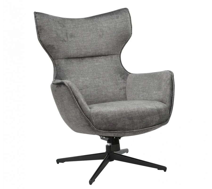 Moderné dizajnové otočné kreslo Krespa so sivým zamatovým poťahom a tvarovanou vysokou opierkou s možnosťou zaklonenia 73 cm