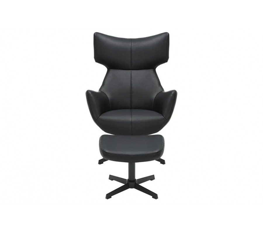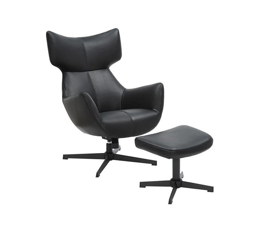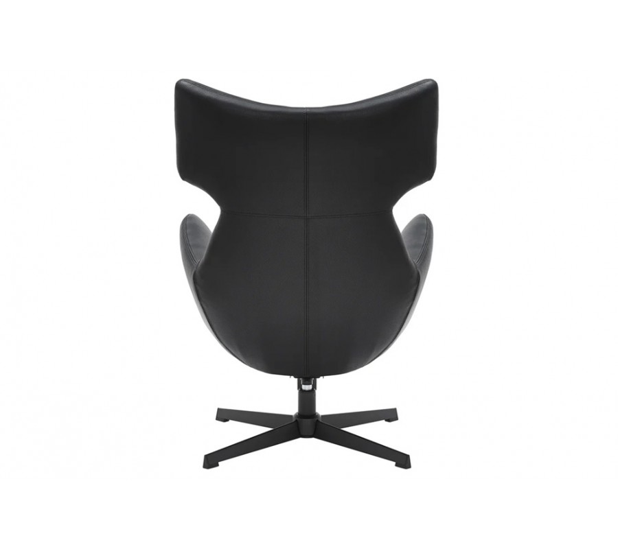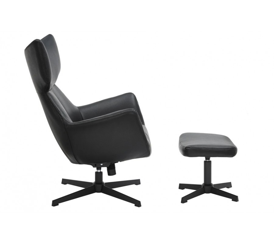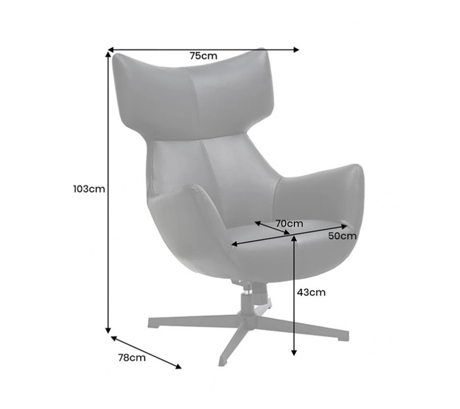 Kreslo má čalúnenú sedaciu časť, ktorá spája geometrické rovné línie s elegantnými zkriveniami na rohoch. Sedadlo je na spodnej strane výrazne zaoblené a v plynulom poloblúku prechádza do línie nižších opierok na ruky. Ich vrchná časť je rovná a plynule sa napája na chrbtovú opierku. Tá sa smerom nahor mierne zužuje a vo vrchnej časti je doplnená rozšírenou opierkou na hlavu. Zošikmené línie pôsobia dynamicky a zaoblenie opierky sa ergonomicky prispôsobí telu.