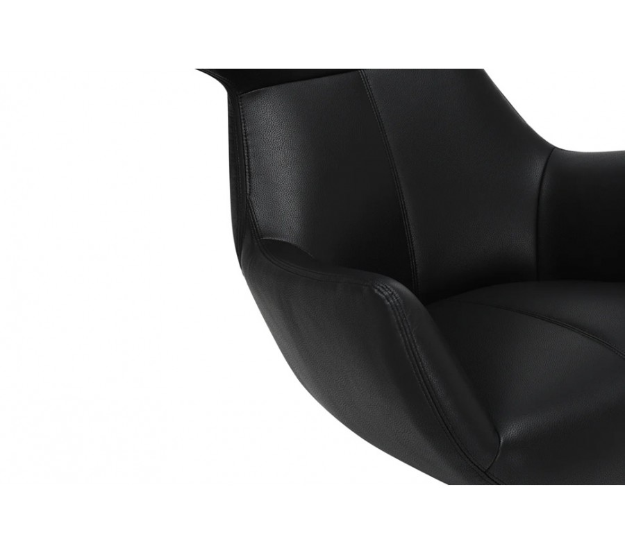 Moderné dizajnové čierne kreslo Krespa s poťahom z ekokože a otočnou kovovou podstavou 75 cm